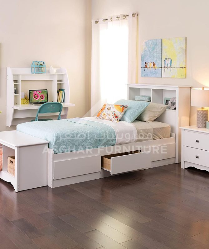 Stock reading materials or make nighttime necessities handy to your child’s sleeping space with this twin-size Allerik Superior Storage Bed, which holds two spacious open storage cubicles on the headboard and three deep drawers in the base giving you ample amount of storage space making your room more open in return.