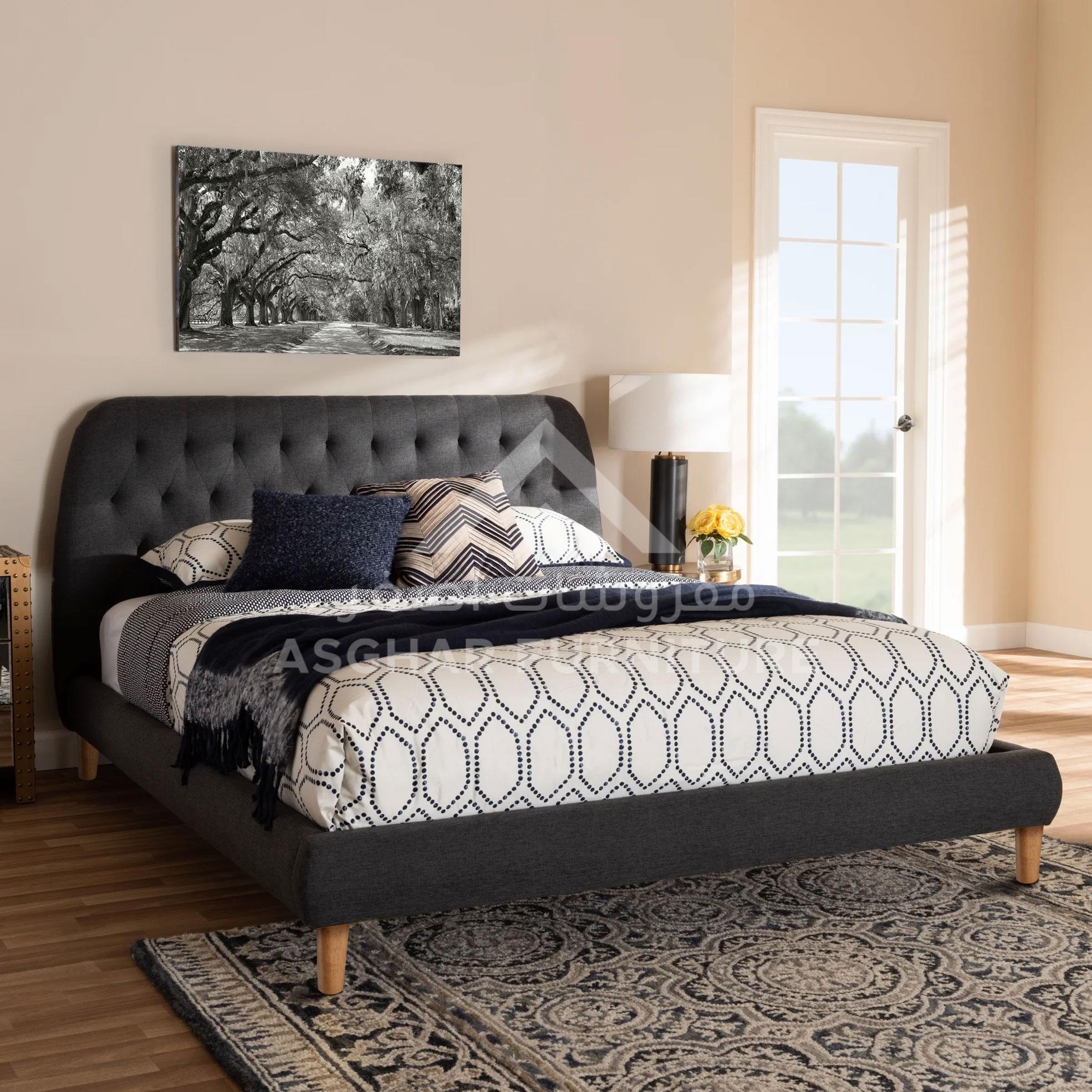 Archer Platform Bed, Transform your bedroom into a chic place to relax with this Archer Platform Bed. Constructed from durable solid wood, it features a soft fabric upholstered button tufted headboard.