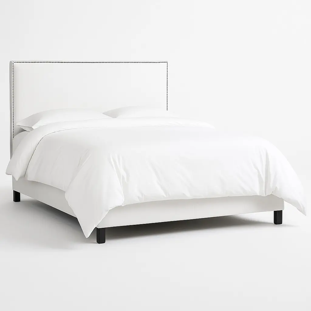 At Asghar Furniture, Create a sleek and sophisticated look for your bedroom with Blush Velvet Bed nail button border bed. Upholstered in soft velvet, the headboard is highlighted with a row of decorative nail buttons outlining the silhouette. The frame is constructed with plush foam padding for added comfort.