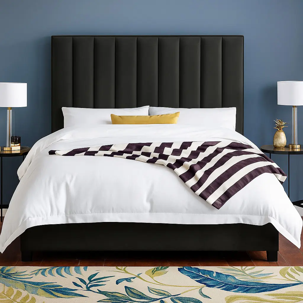 • Channel-tufted headboard