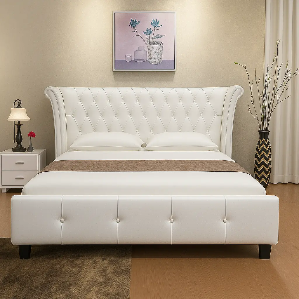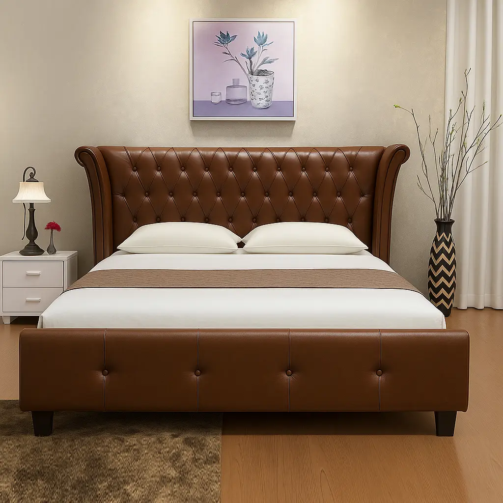 Enhance the luxurious vibe to your bedroom with Dake diamond tufted designer bed. Padded with plush foam and faux leather, Dake diamond tufted designer bed’s stylized built features a diamond-tufted headboard that will add a unique accent to any room it is placed in. A truly magnificent design by Asghar Furniture