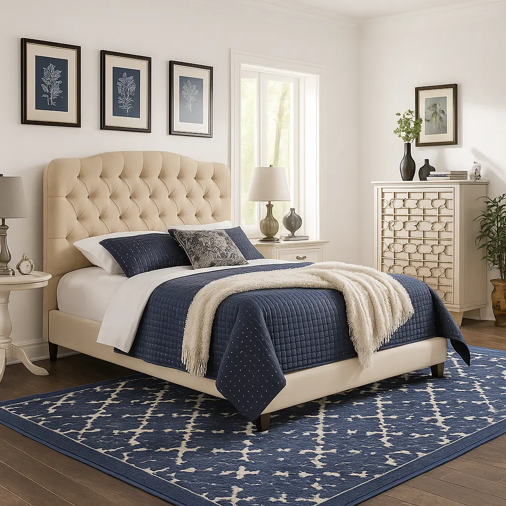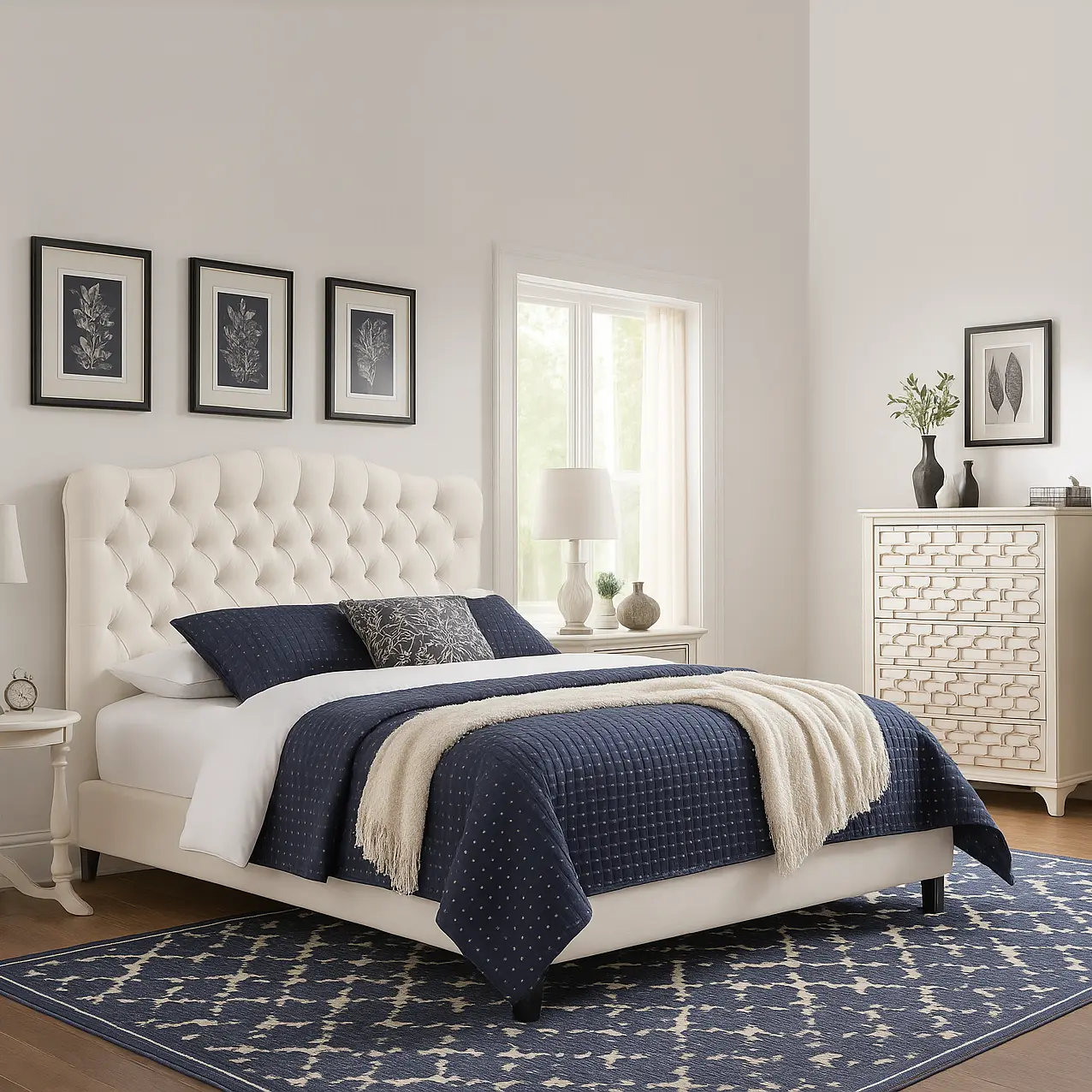 Diamond Tufted Bed: Create a remarkably comfy and inviting slumber space with this linen-look upholstered panel bed. Eye-catching diamond button tufting completes the breathtaking arched headboard.