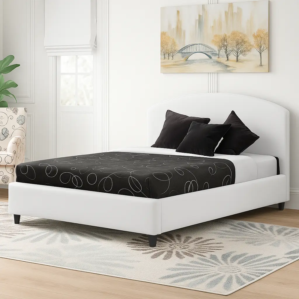 Ellie Minimalist Premium Bed crafted with a slim headboard available in a straight or rounded half-moon profile. Asghar Furniture gives you the choice to customize it in any of the following; fabric, leather or faux leather in various colors. Ellie Minimalist Premium Bed is great for setting in a very minimalist tone for the people of taste & class.