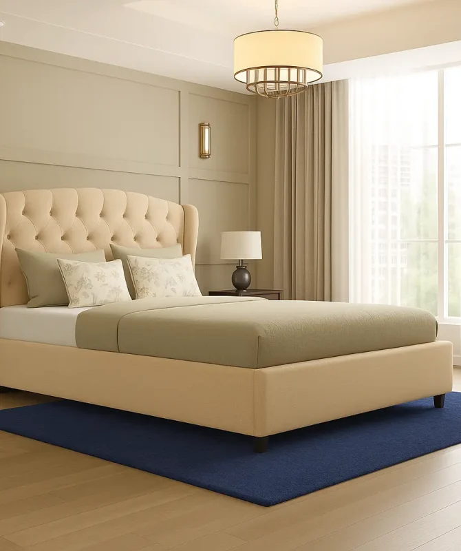 Embre Wingback Tufted Bed is a gorgeous designer bed by Asghar Furniture. The bed showcases premium linen upholstery with plushily padded button tufting along the headboard. It’s not just about comfort with Embre Wingback Tufted Bed it’s also about the class and elegance it brings to your bedroom with its traditional design.