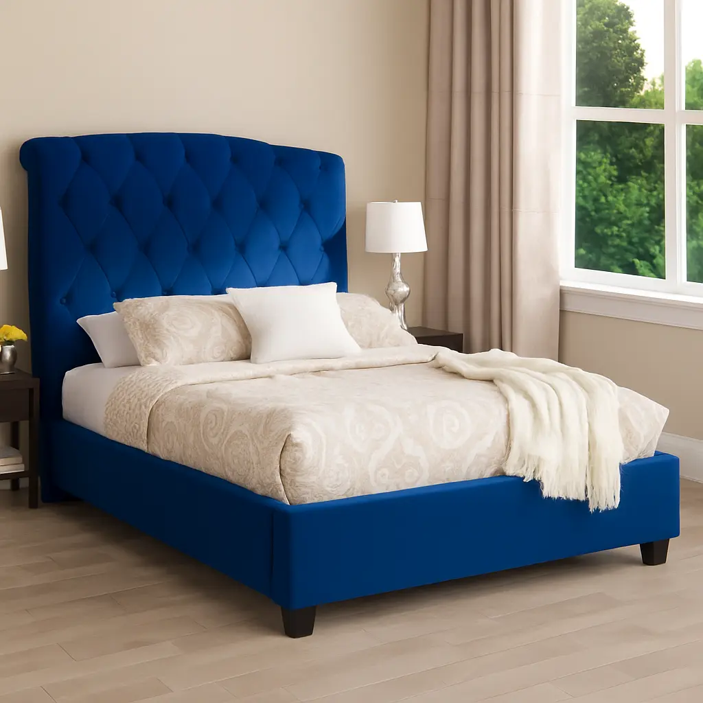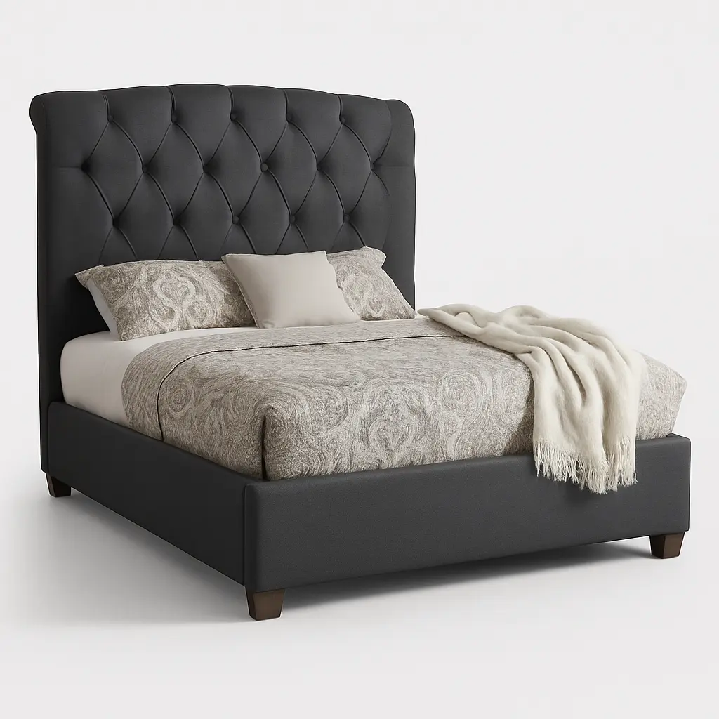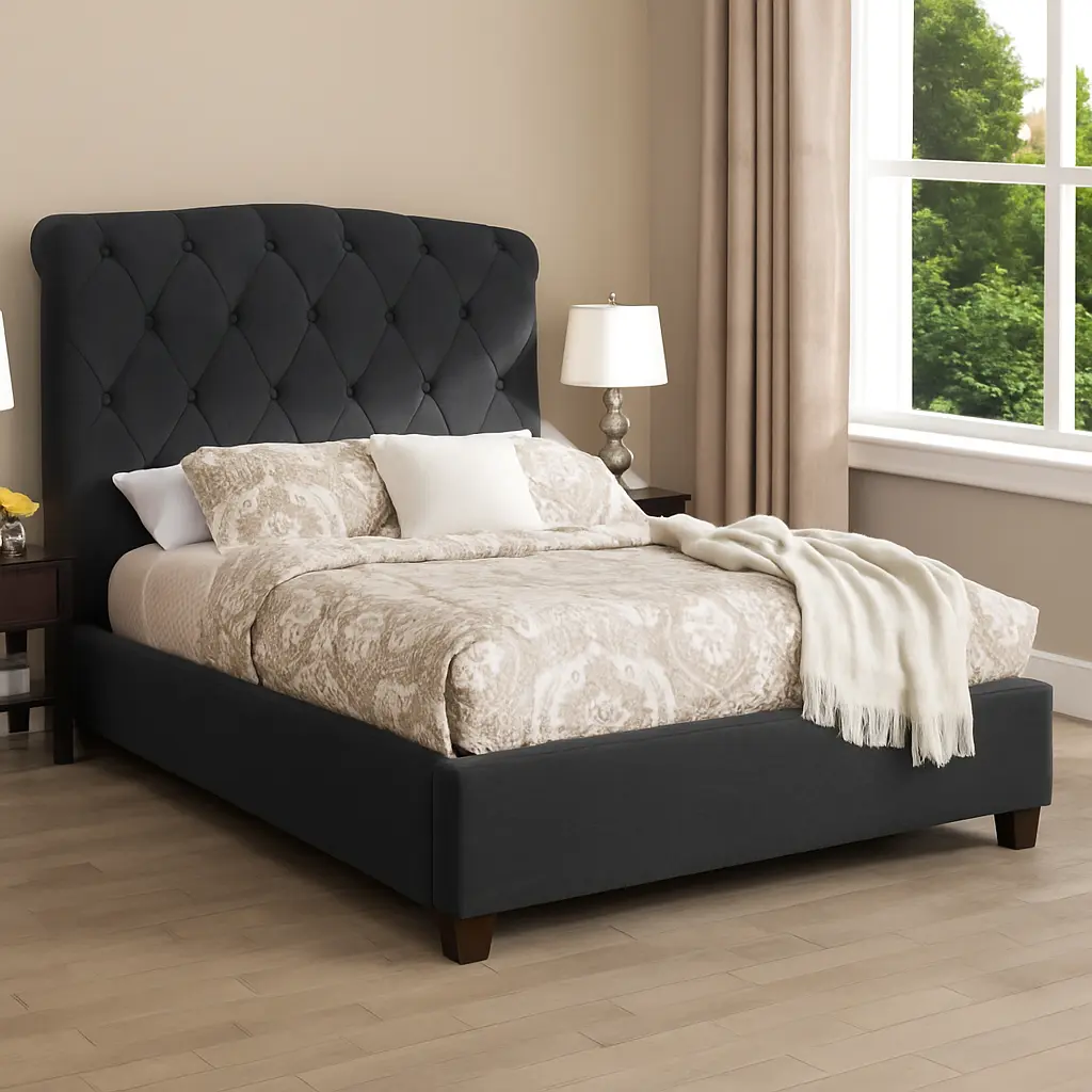 Jennings Fabric Bed: This upholstered platform bed features an oversized, tall button-tufted headboard in your choice of a fabric color. With the luxe and dramatic look you’ve been searching for, it’s distinctive flavor can be easily coordinated with existing spaces, perfect if you want to refresh your bedroom or guest room with ease.