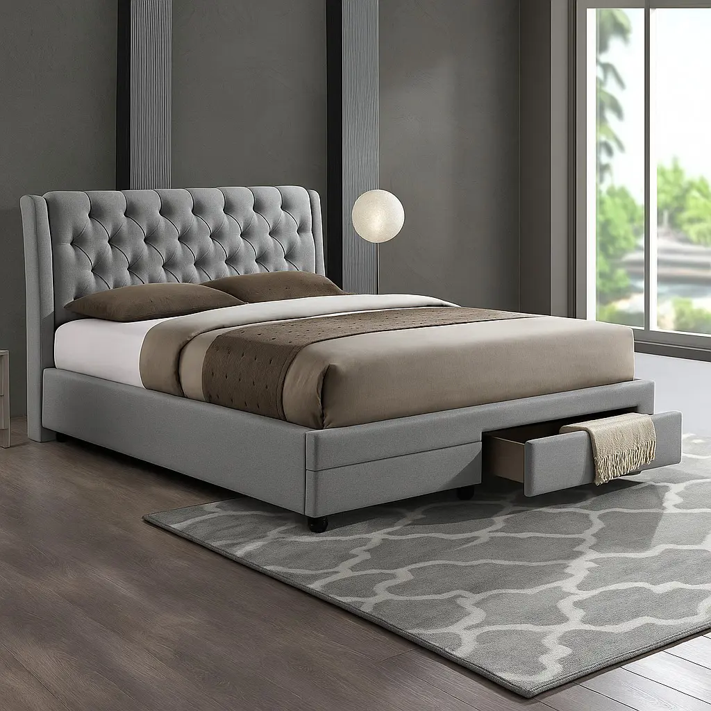 The Raven Luxury Storage Bed is the perfect choice for people who want a bed with style and great storage space, not to mention the sheer comfort this design by Asghar Furniture provides. Raven Luxury Storage Bed brings out the charm of your bedroom with its sophisticated designer headboard along with two deep drawers embedded in its footboard.