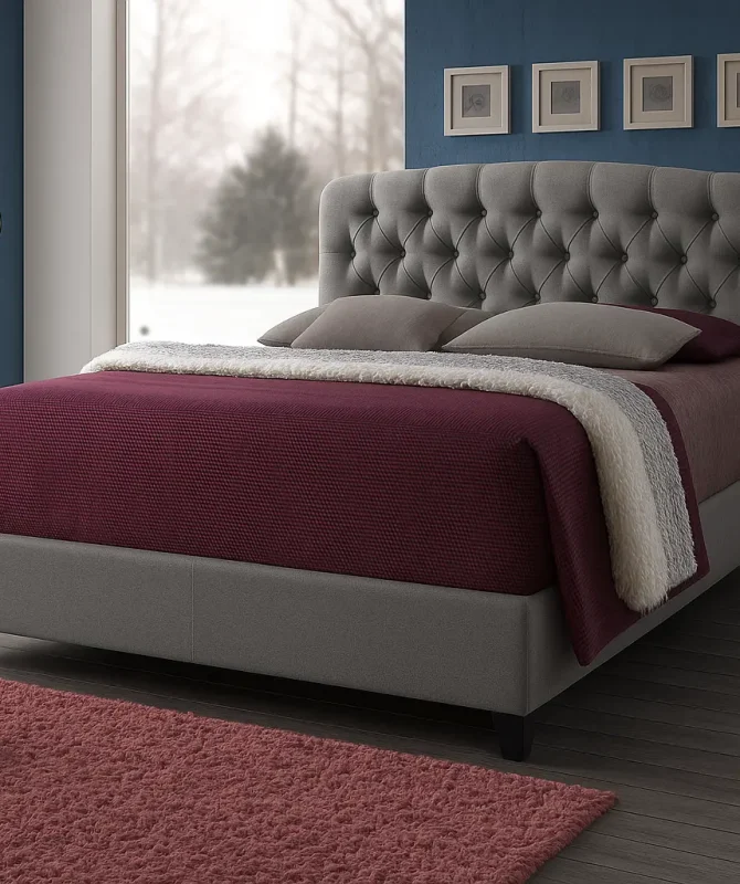 - Upholstered headboard, Tufted Design
