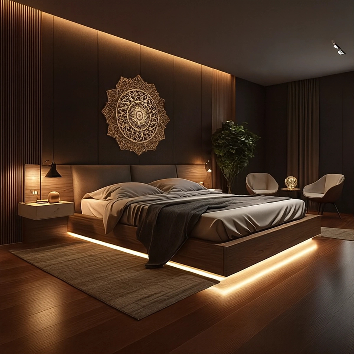 The ZenWood Glow Bed by Asghar Furniture blends natural wood warmth with modern LED underlighting, creating a serene and contemporary centerpiece. With its padded headboard, clean lines, and premium craftsmanship, this minimalist platform bed brings refined comfort and elevated style to Dubai bedrooms.