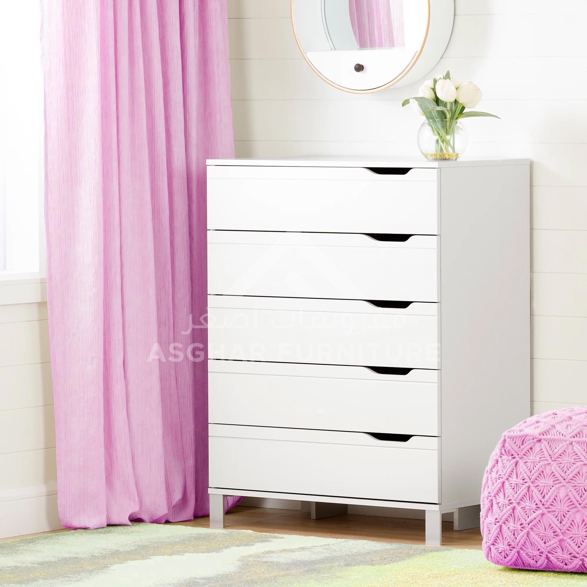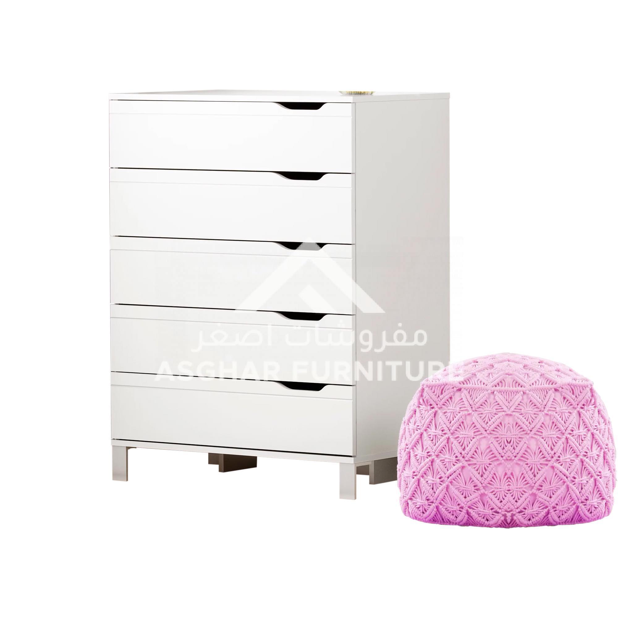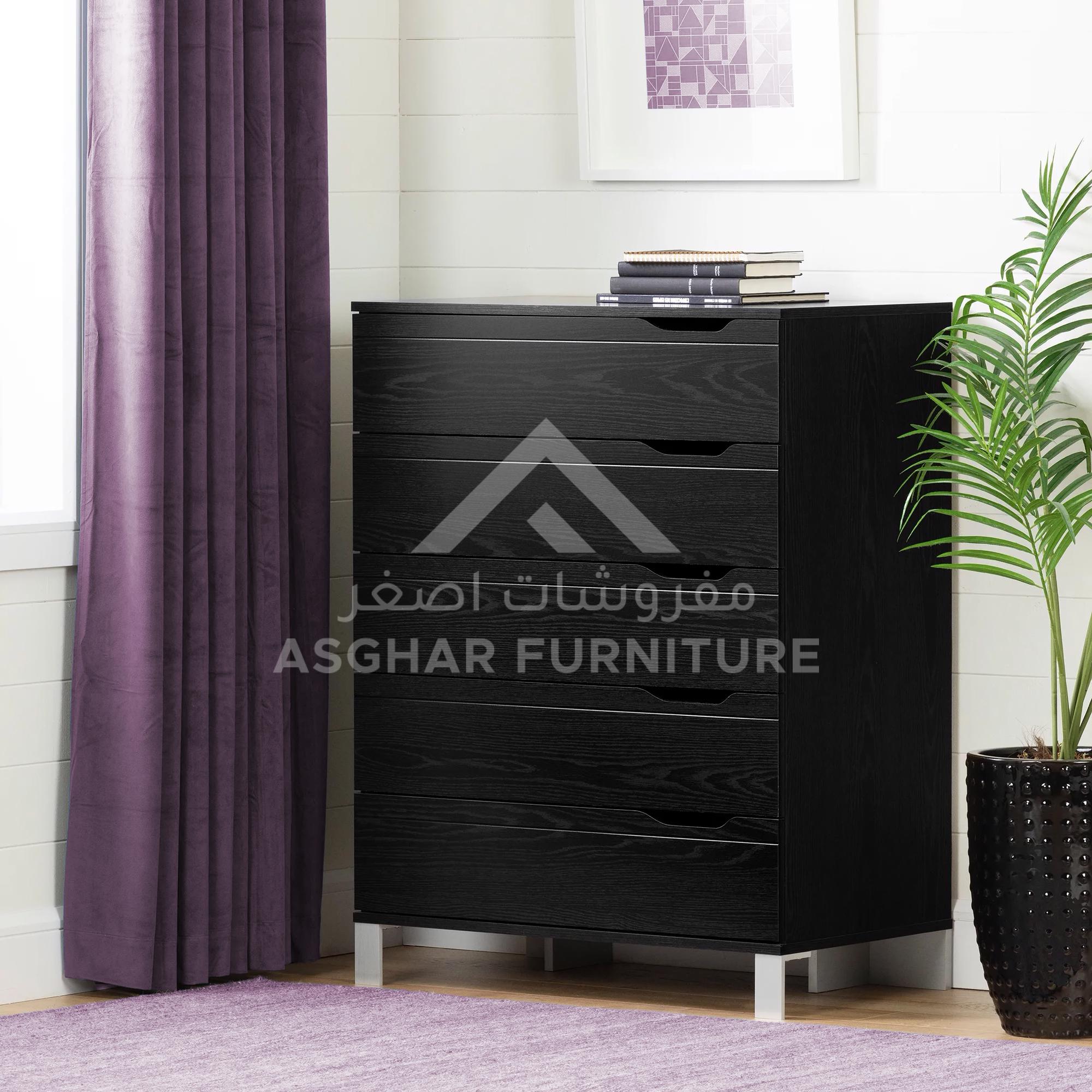 Hera Premium Drawer Chest, an attractive section by Asghar Furniture for your bedroom that will definitely uplift the décor style. With its contemporary design Hera Premium Drawer Chest takes up less space in your room, yet gives you plenty of storage space with its 5 deep drawers. The drawers are stacked, so you can store lots of clothes without losing too much floor space.