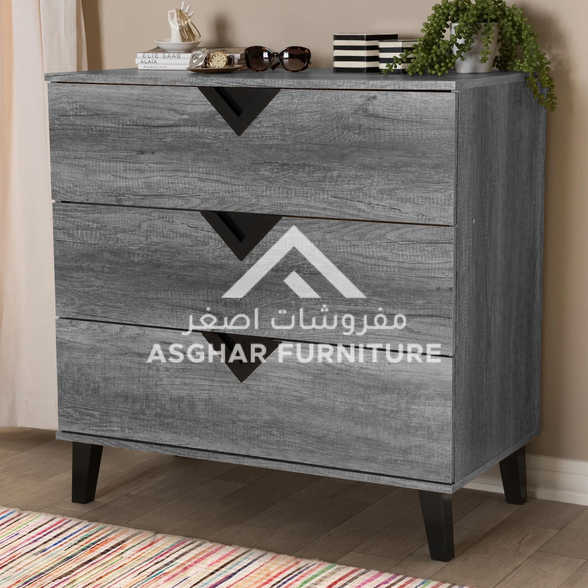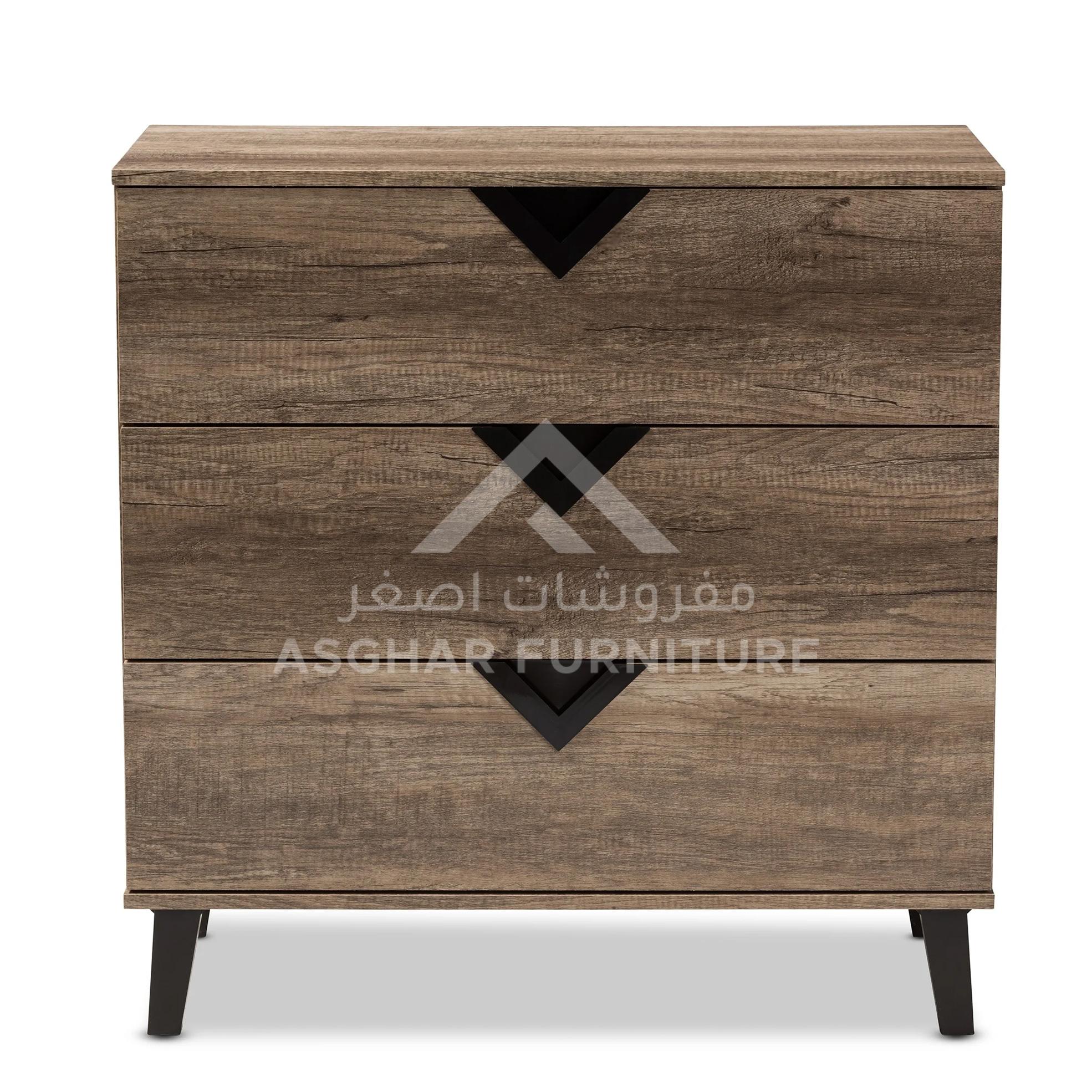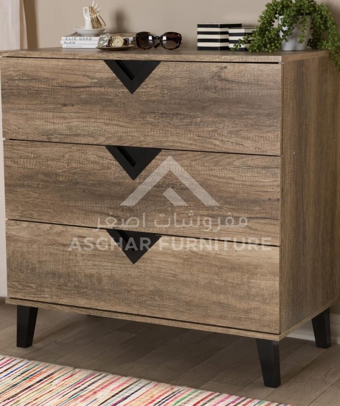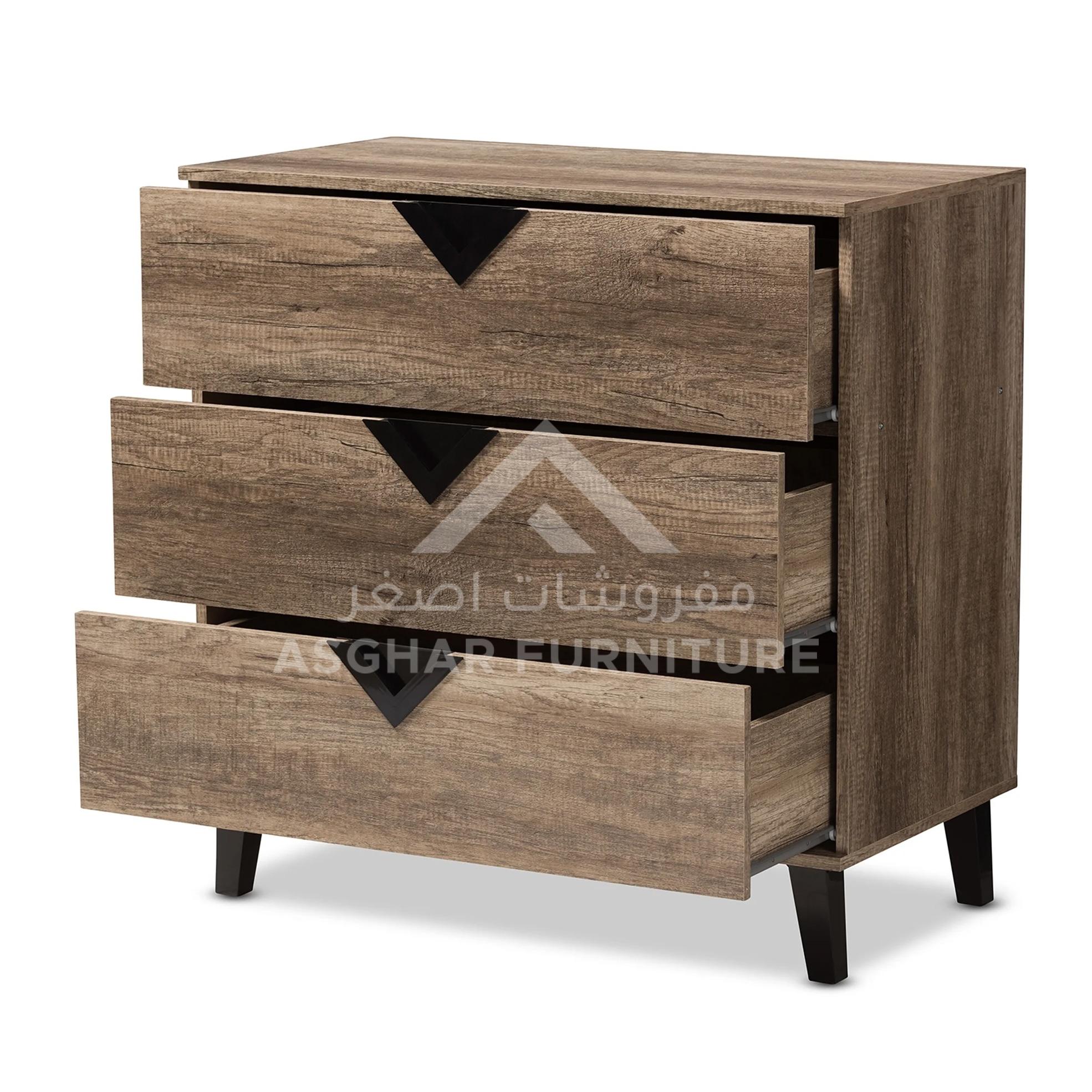 Nolita Contemporary 3-drawer Chest, Boasting a strikingly modern and handsome geometric silhouette, accent this light brown-finished, three-drawer, contemporary chest, ideal for storing clothes and accessories of all kinds.