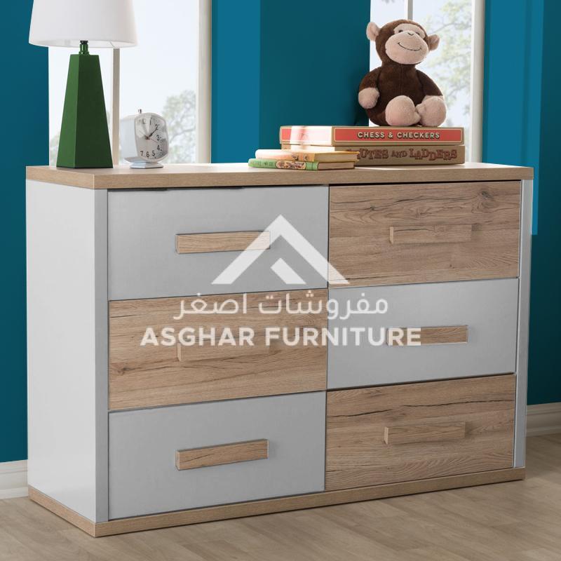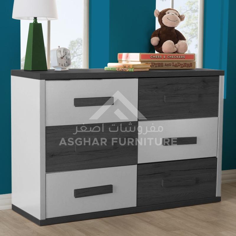Two-Tone Chest, Modern and contemporary styling by Asghar Furniture, the dresser features two-tone color in brushed oak and grey, bringing a natural touch to your kid’s or teen’s bedroom while creating a conducive atmosphere for rest and relaxation.