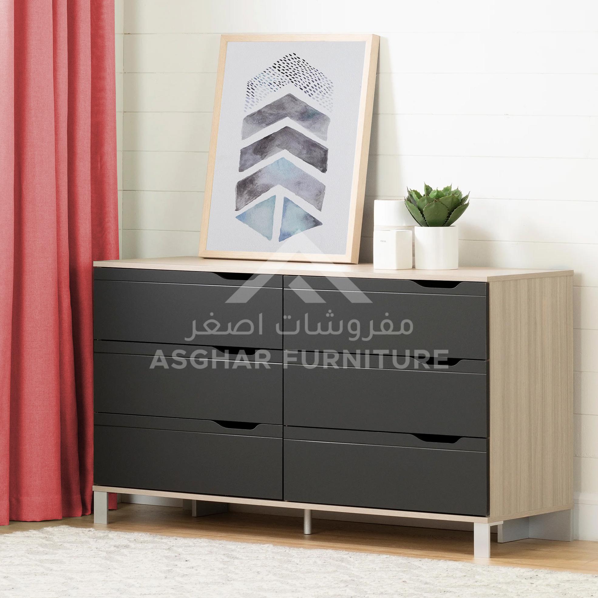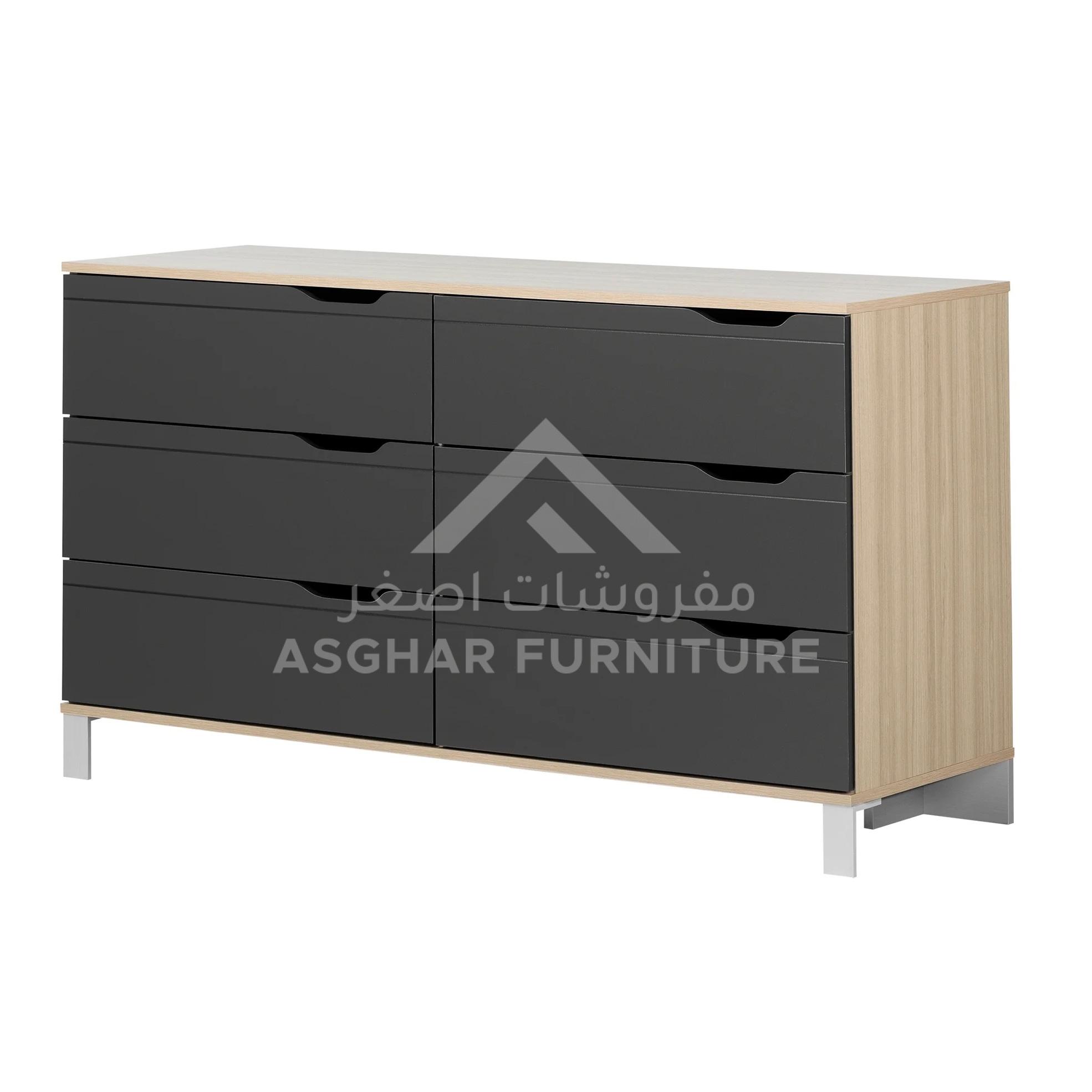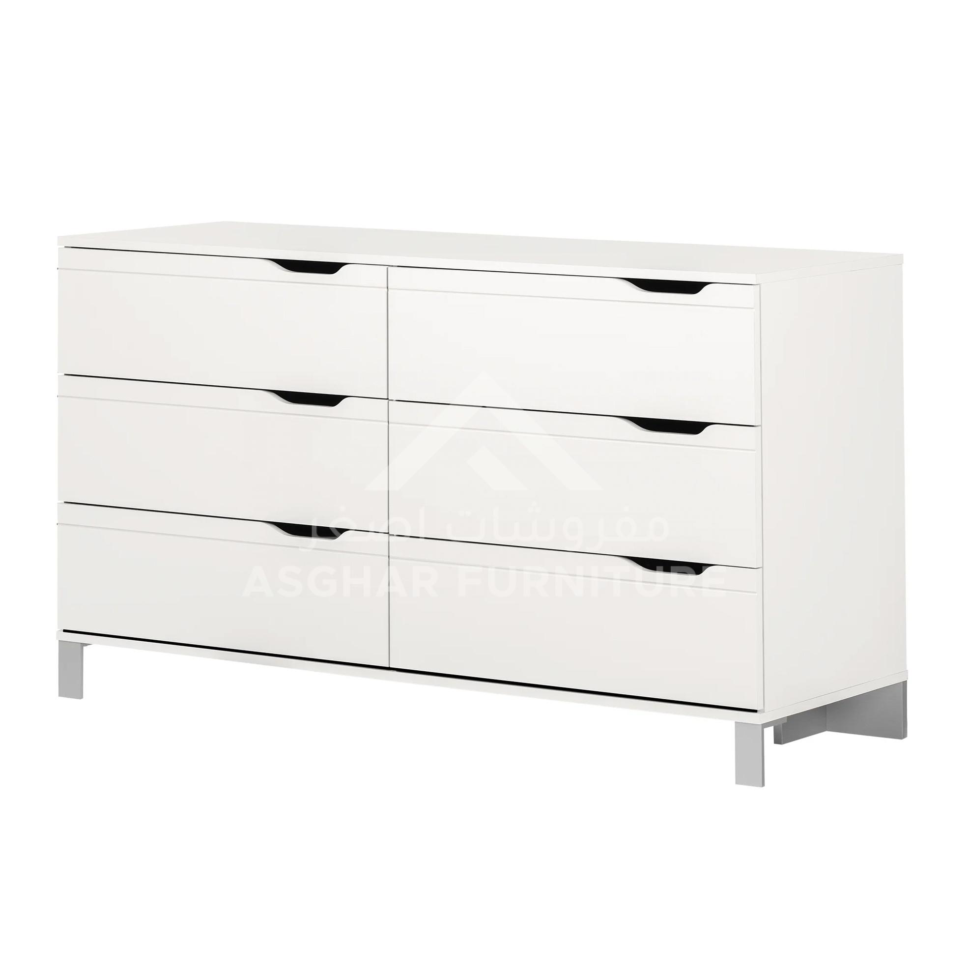 New Bella 6 Drawer Double Dresser, Here’s a narrower piece for your bedroom that’s designed for height and has a smaller footprint. Fold your clothes then store them neatly inside the six large drawers of this New Bella chest of drawers. The drawers are stacked, so you can store lots of clothes without losing too much floor space.