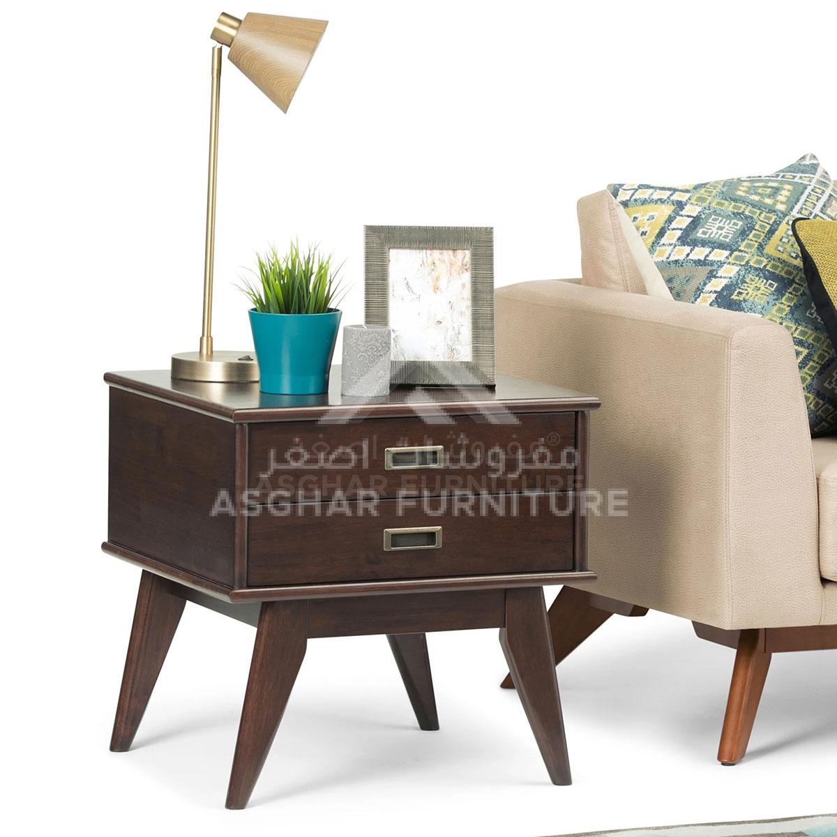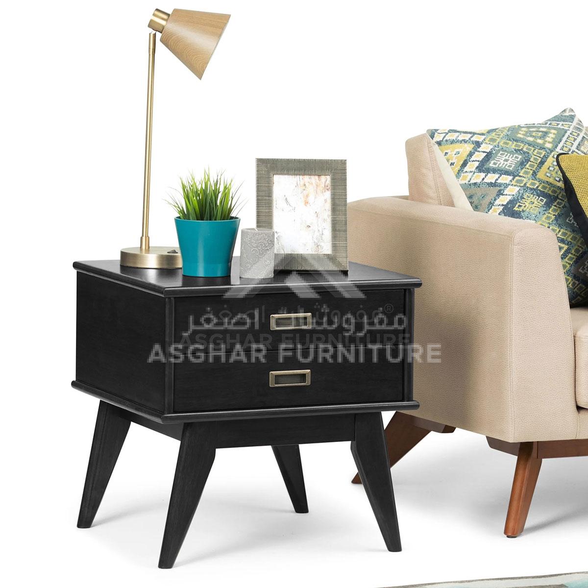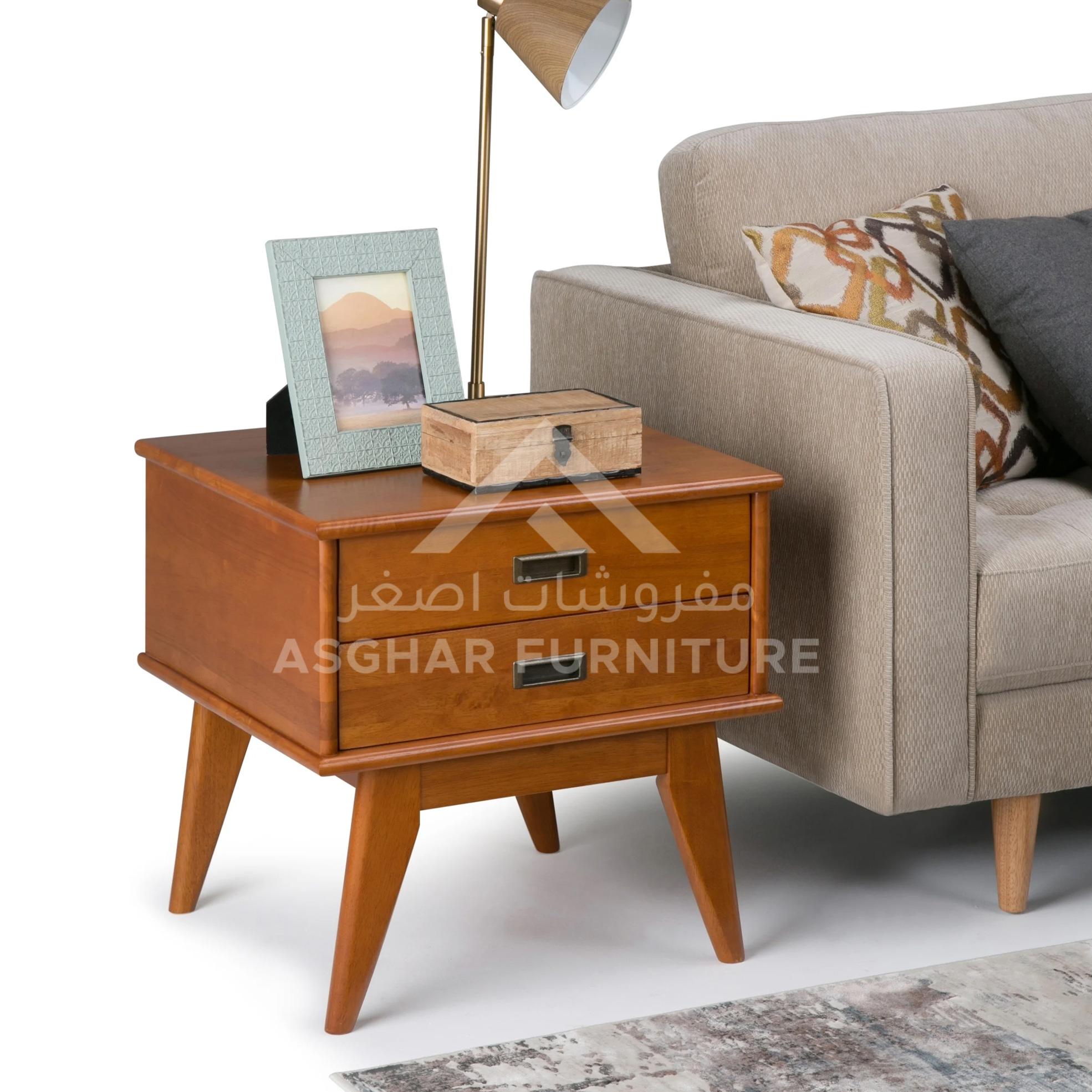 Place the attractive mid-century modern appeal of this Napa Two Drawer Rectangle Side Table in your living room or office space. Recessed drawer pulls let you easily open the two drawers for concealed storage to keep living room clutter under control.
