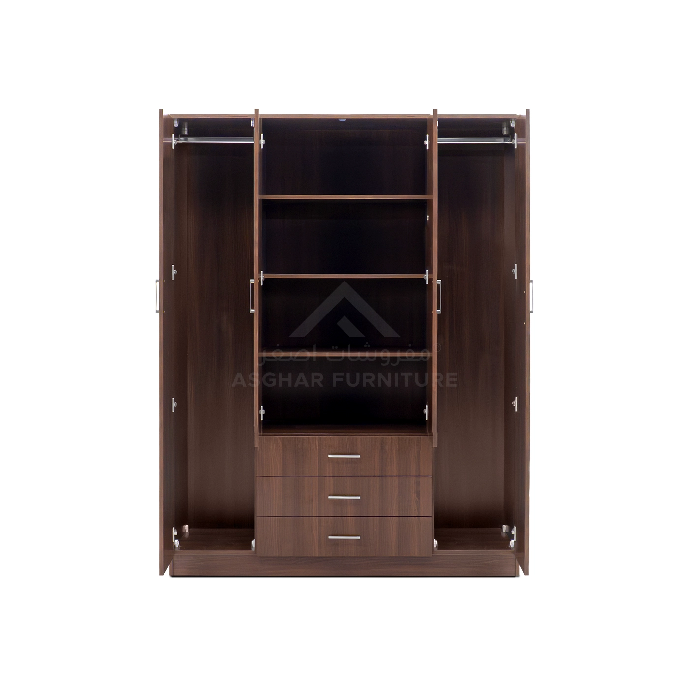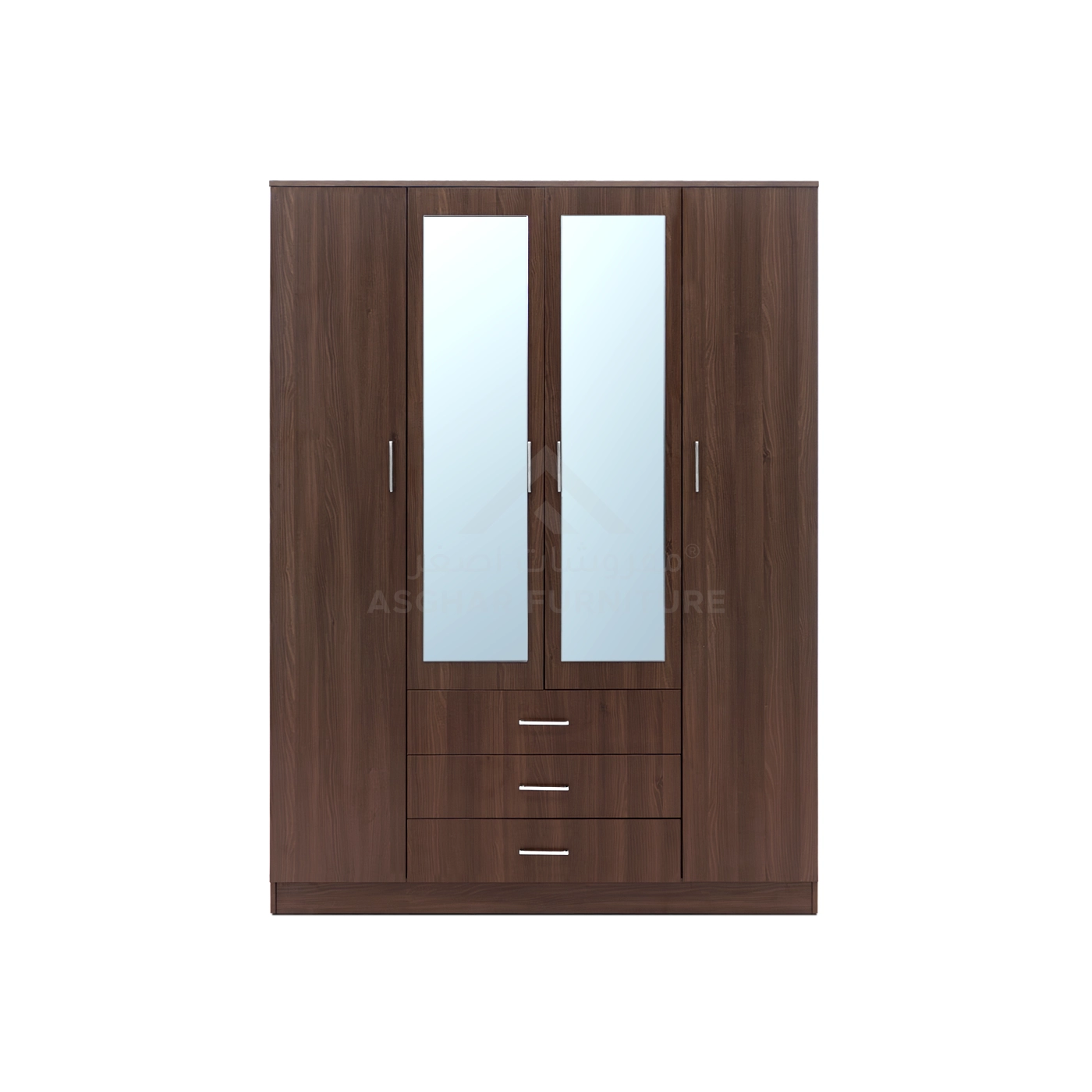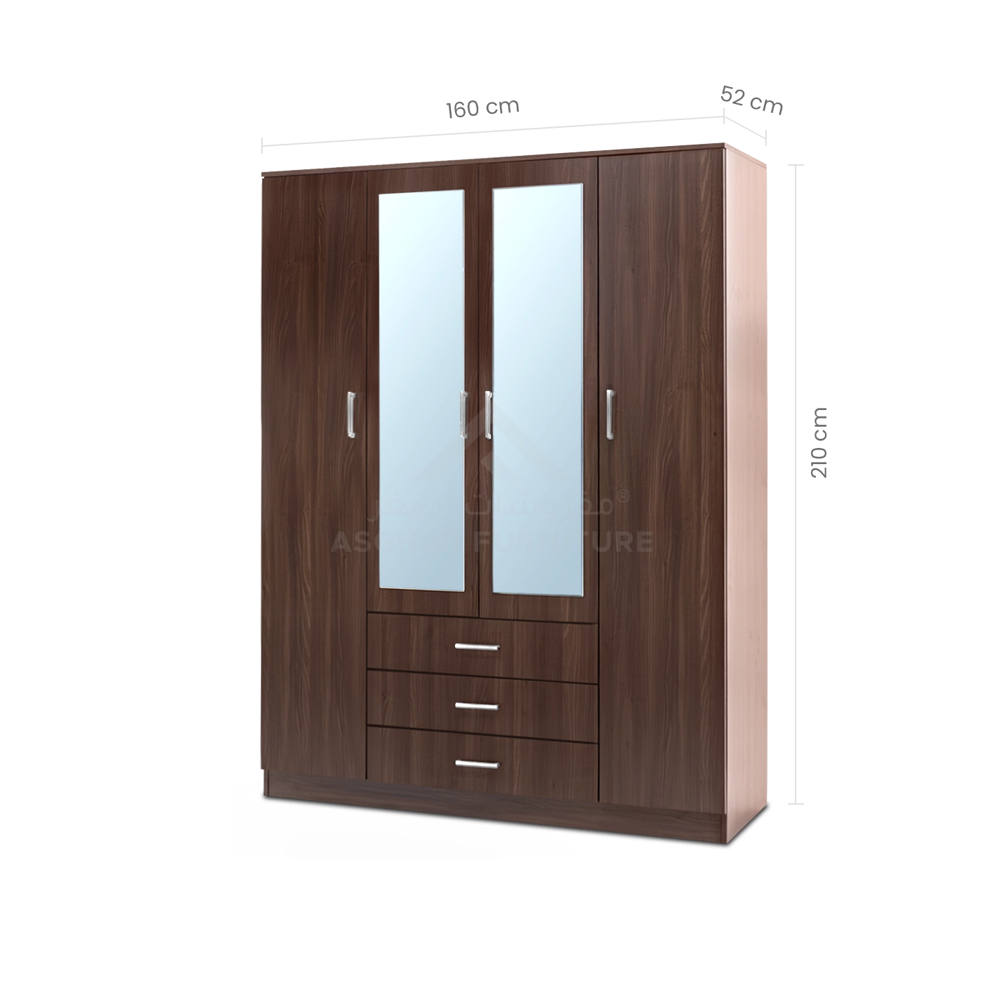 Say goodbye to everything that clutters your bedroom with the Dulab Mirror Wardrobe, ingeniously crafted by Asghar Furniture. This white wardrobe offers ample hanging space for clothes, multiple shelves, and three large, silky-sliding drawers designed to keep your room neat and organized.
