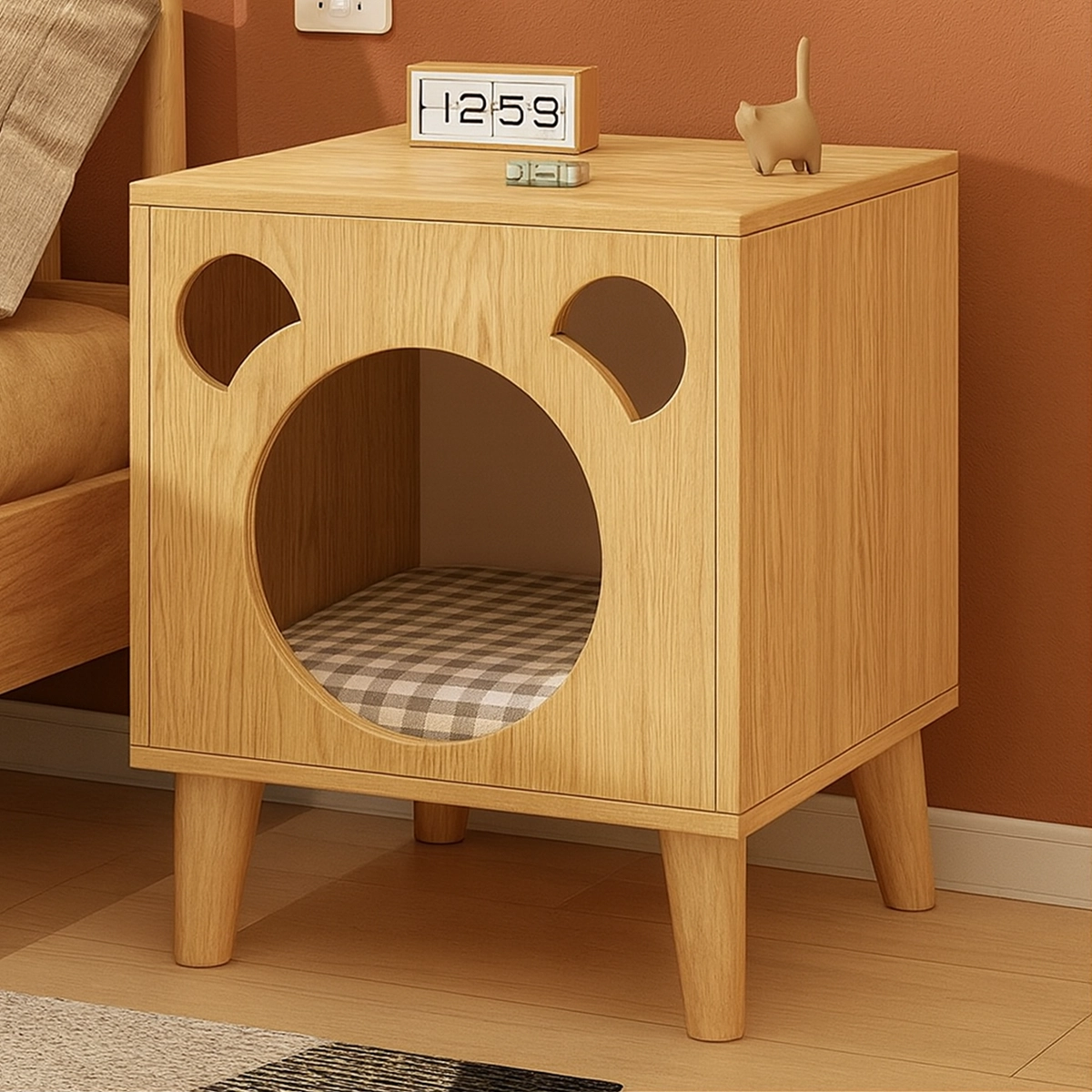 The CatNook blends playful design with practical functionality, featuring a charming cat-shaped cutout that doubles as a cozy pet nook. It provides a safe resting space for small pets while offering a sturdy surface for bedtime essentials. Its smooth edges, elevated legs, and modern aesthetic make it a stylish and functional addition to kid’s bedrooms or family spaces.
