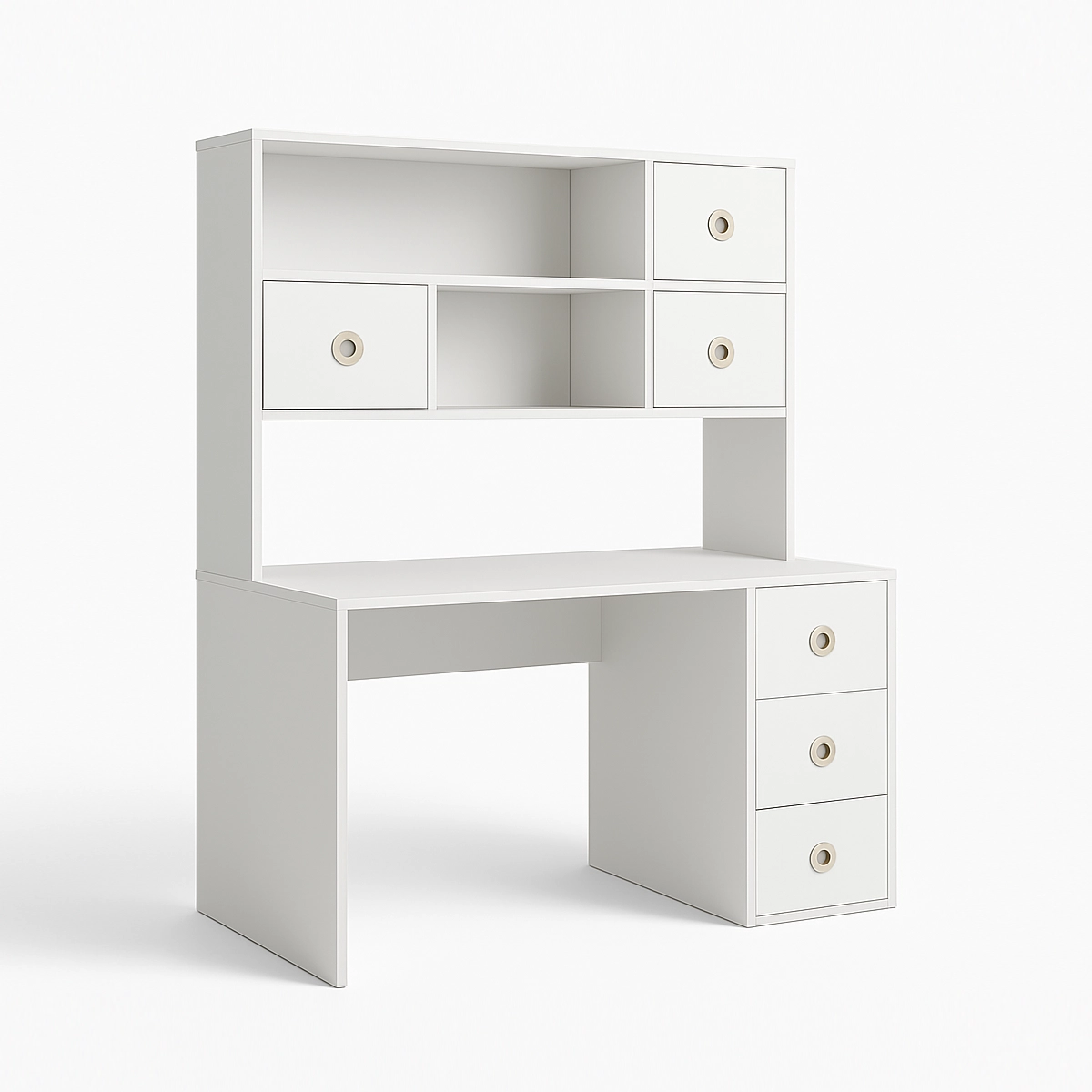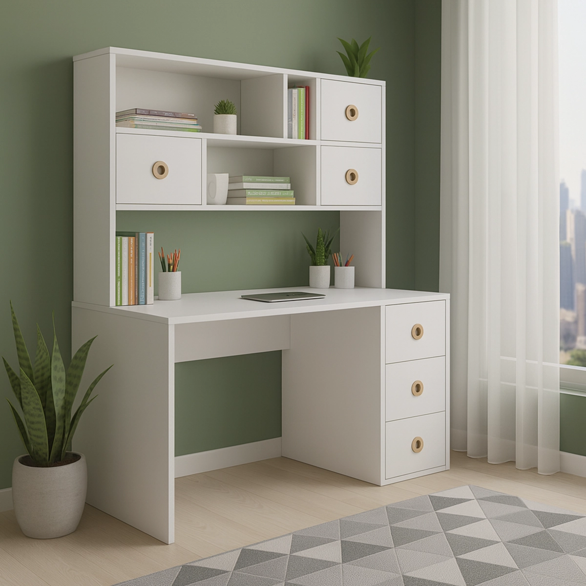 The LearnNest Kids Study Desk offers a spacious work surface, three smooth drawers, and a practical upper hutch for organized storage. Its clean white finish suits any modern kid’s room, while the sturdy, child-safe construction ensures long-lasting use. A smart, space-efficient study desk designed to support focus, productivity, and daily learning.