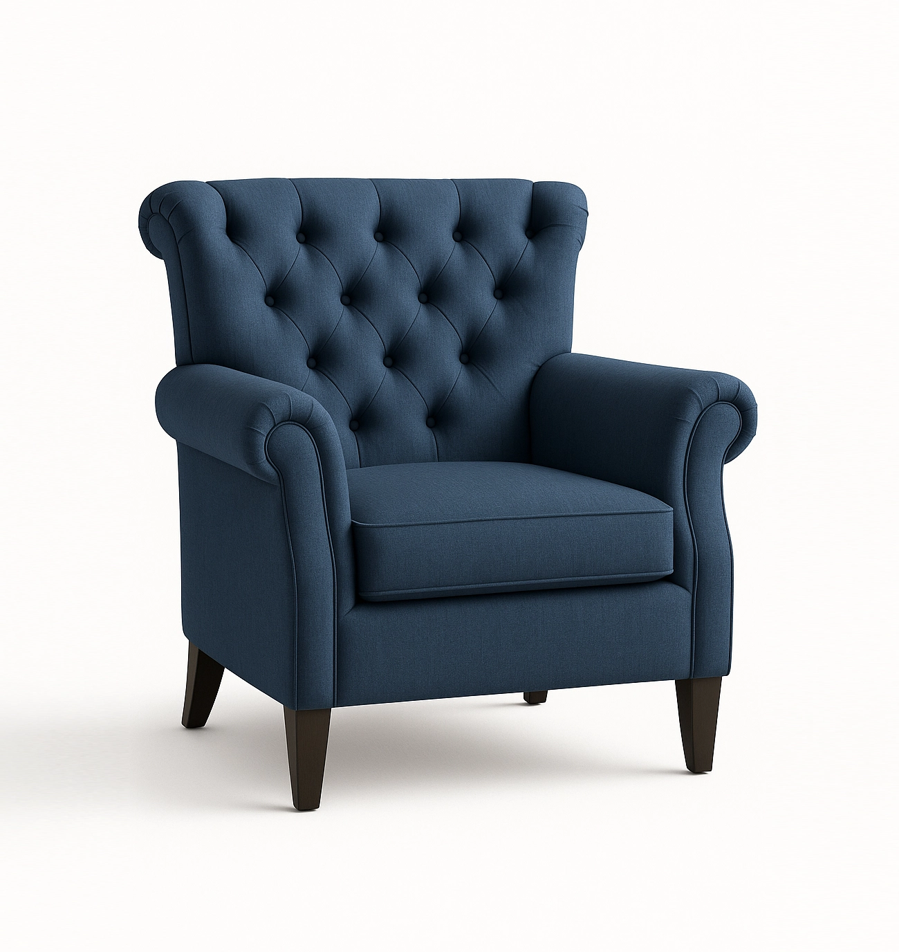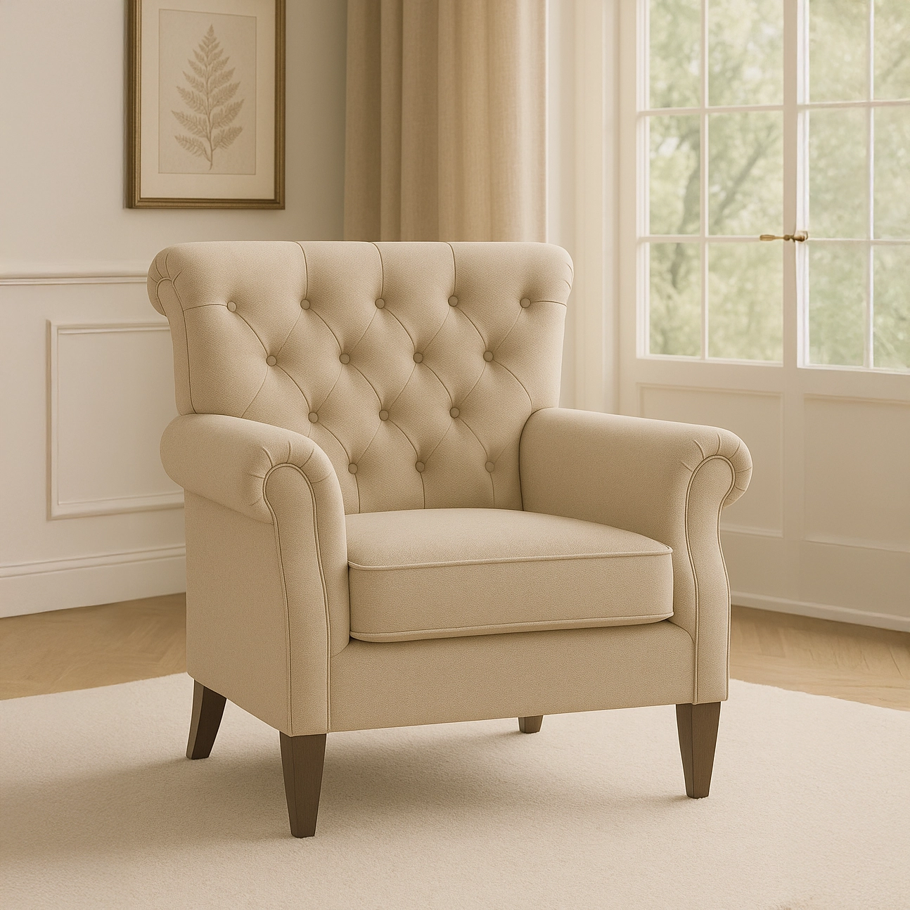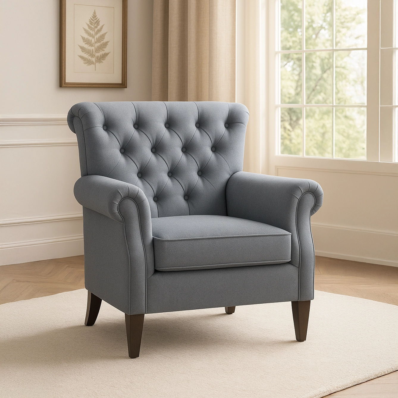 Classic and contemporary elements collide in Brust Modern Armchair. This armchair is crafted with a wooden frame, foam fill, soft seating, and fabric upholstery for an approachable and inviting look. A rolled back and arms bring out this design’s traditional side, while diamond-tufted details