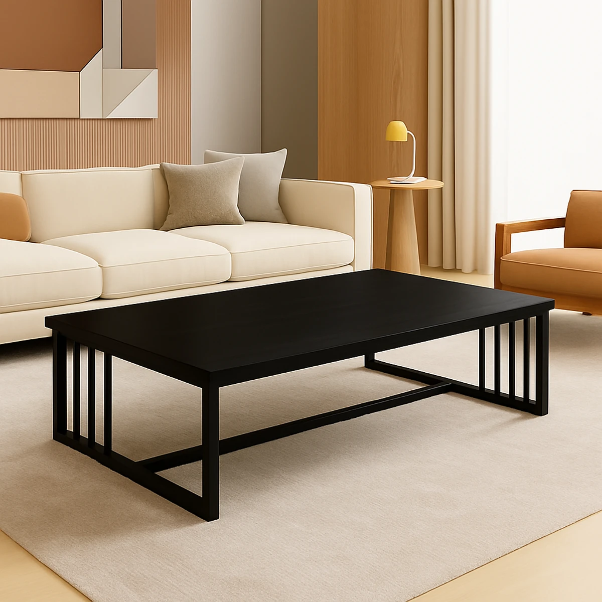 Elevate your living space with the ShadowGrid Coffee Table, featuring a sleek matte-black top and geometric grid-frame legs for bold visual impact. Sturdy, spacious, and refined, it anchors modern and luxury interiors with clean, contemporary style.