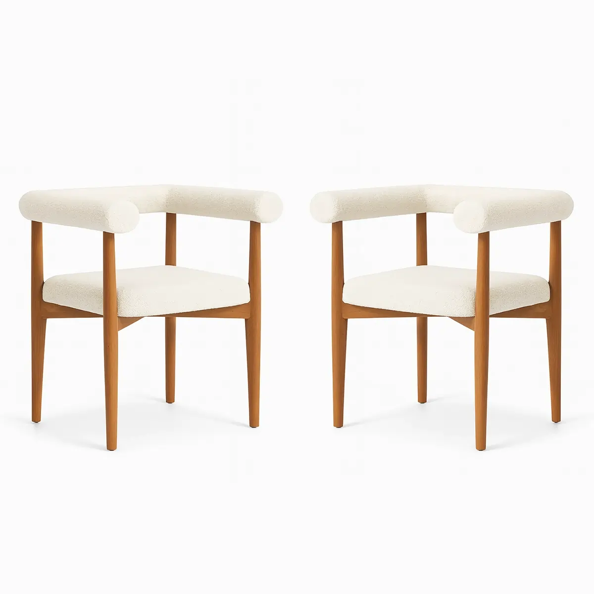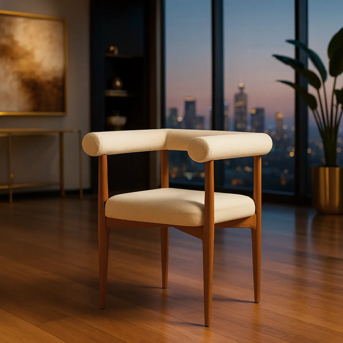 The Seraphina Modern Dining Chair brings refined luxury to any interior with its sculptural boucle upholstery and elegant wooden frame. Designed for contemporary, minimalist, and upscale dining spaces, it offers plush comfort, warm texture, and a graceful silhouette that elevates everyday dining with effortless sophistication.