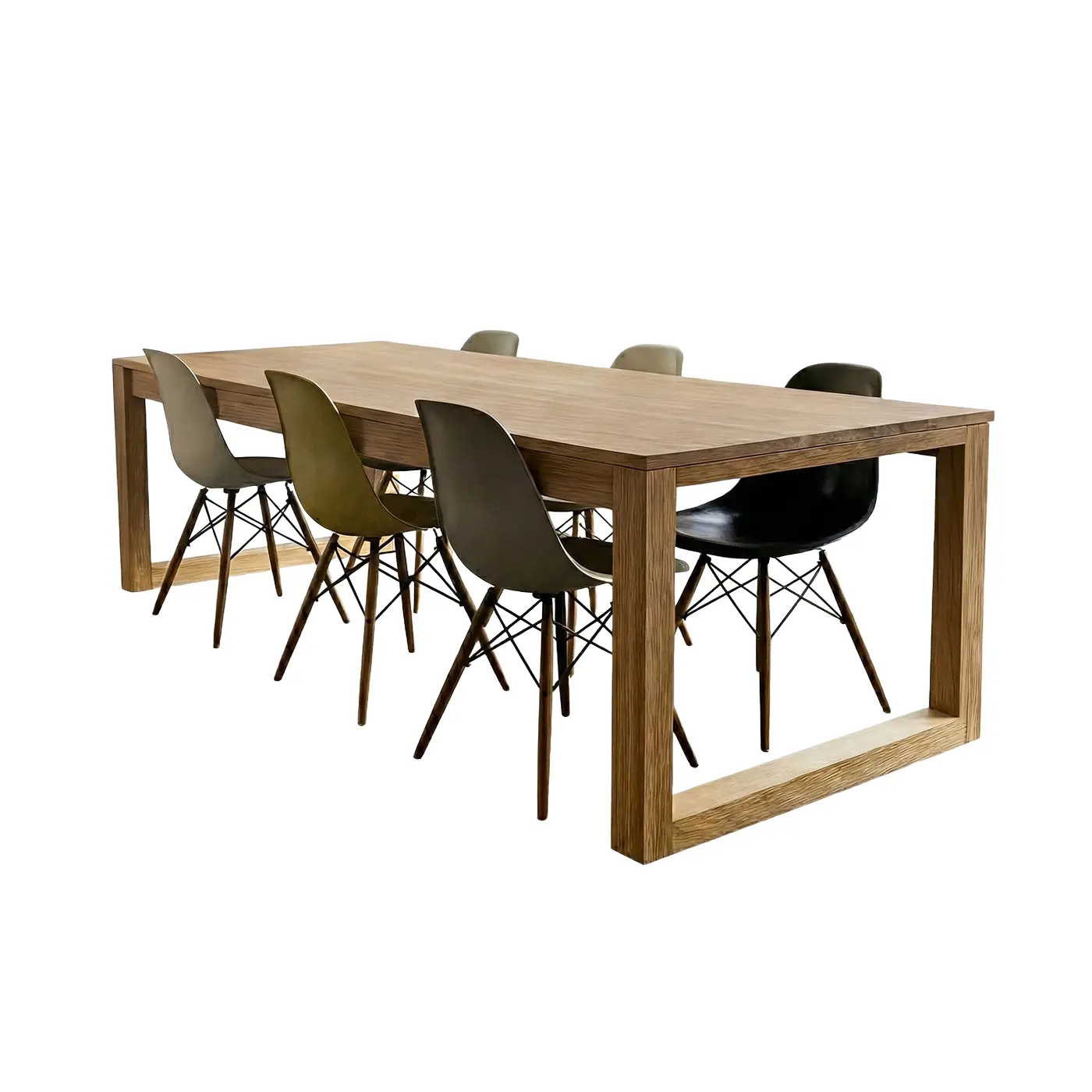 The Sova Dining Set brings Scandinavian simplicity to your home with its warm oak finish, clean lines, and sturdy wide-leg frame. Designed for modern kitchens and dining rooms, this spacious 4/6-seater table pairs perfectly with molded chairs to create a bright, minimal, and comfortable dining space.