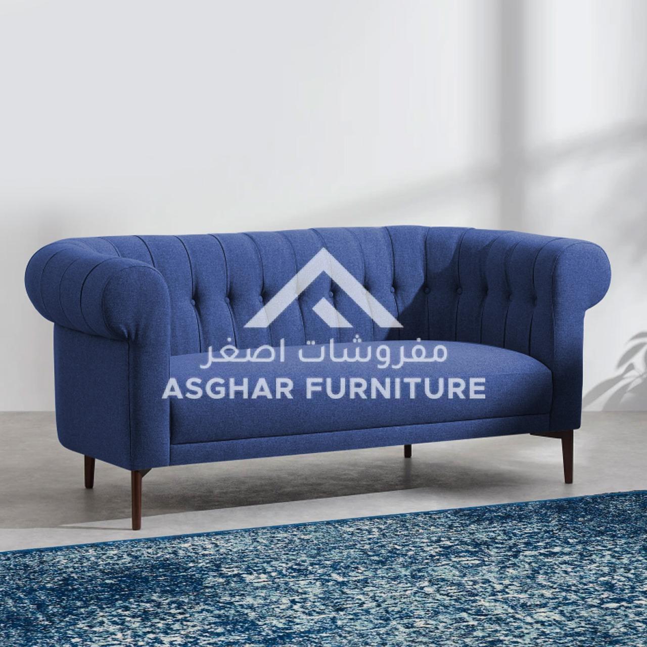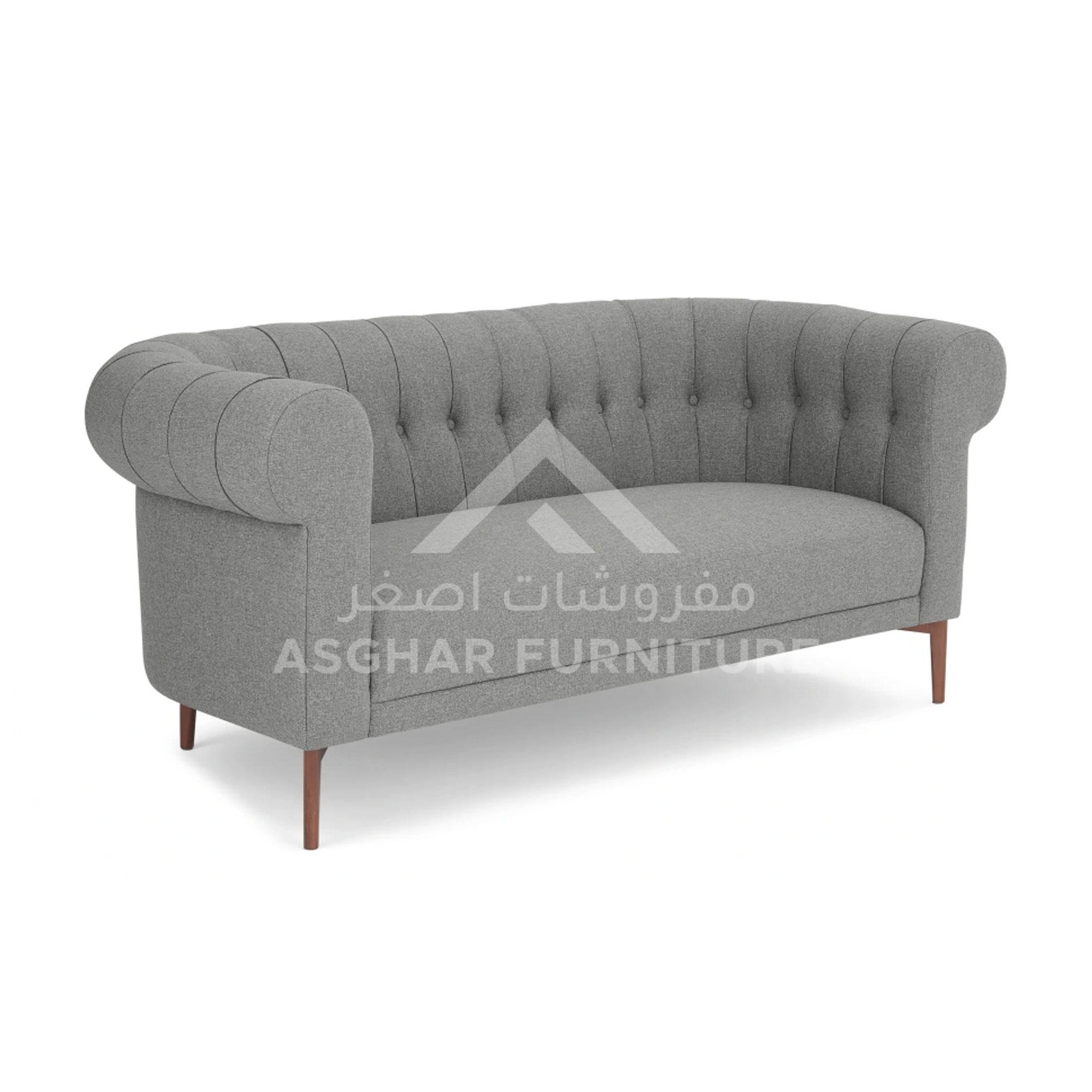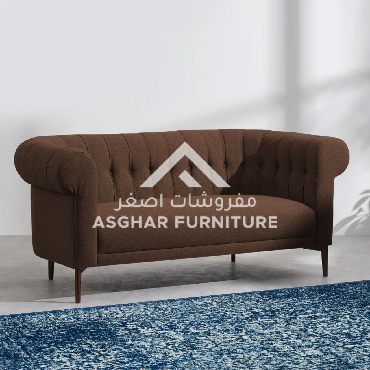 At Asghar Furniture, This Classic Rolled Arm Loveseat has a frame constructed of solid wood, upholstered with fabric, button tufted back and filled with foam.