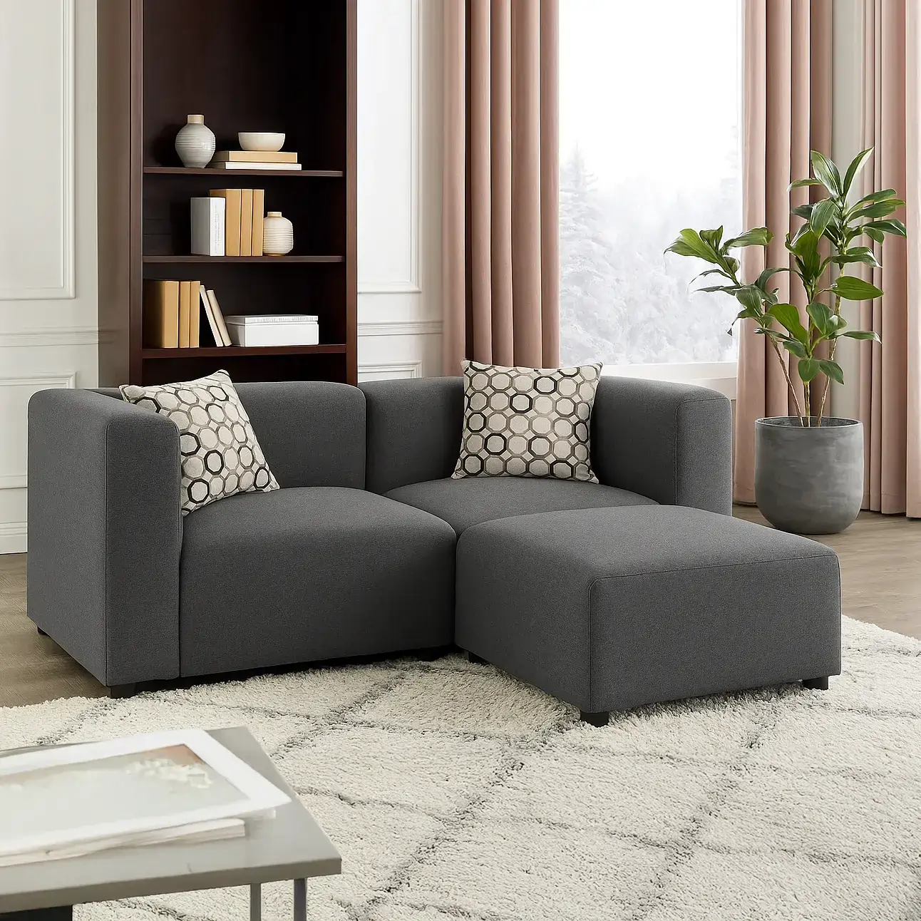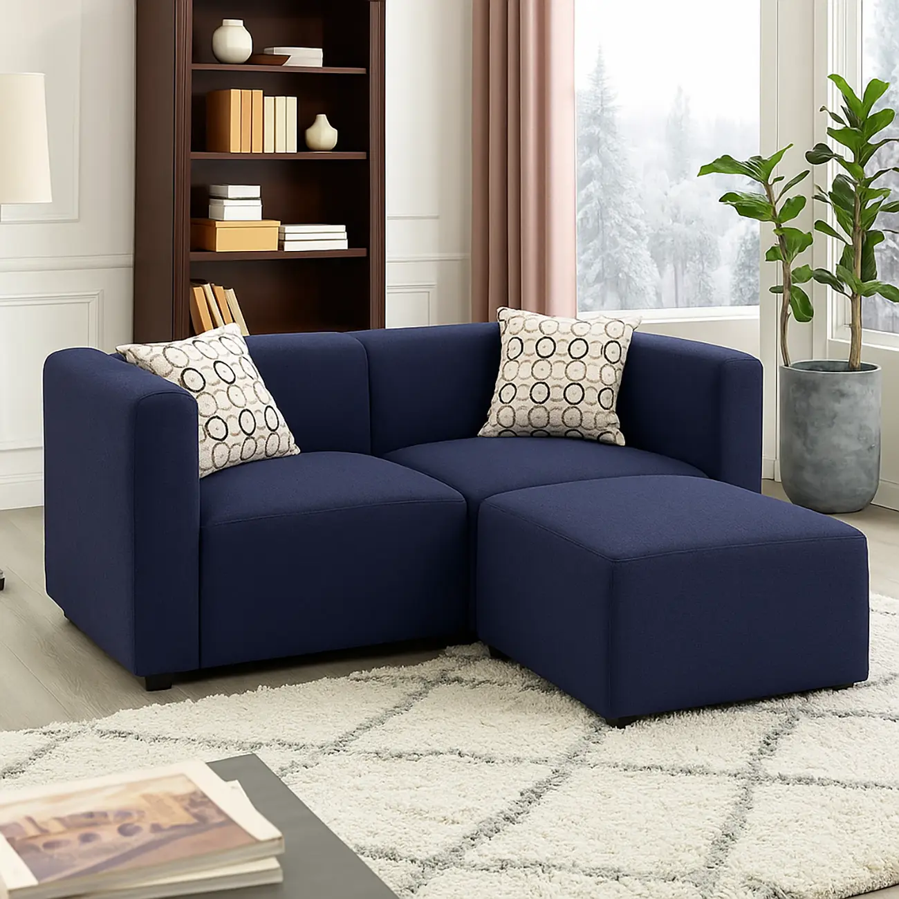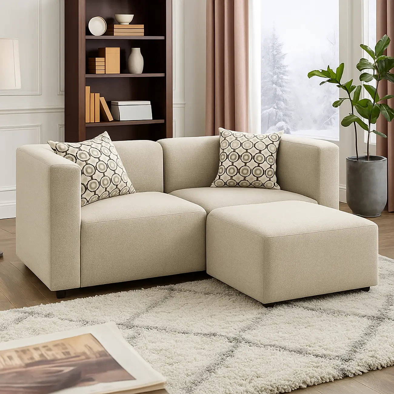 Stella Loveseat With Ottoman, This Sectional Sofa for Small Space showcases a clean-lined and mod-inspired design. This Stella loveseat anchors any room in classic style.