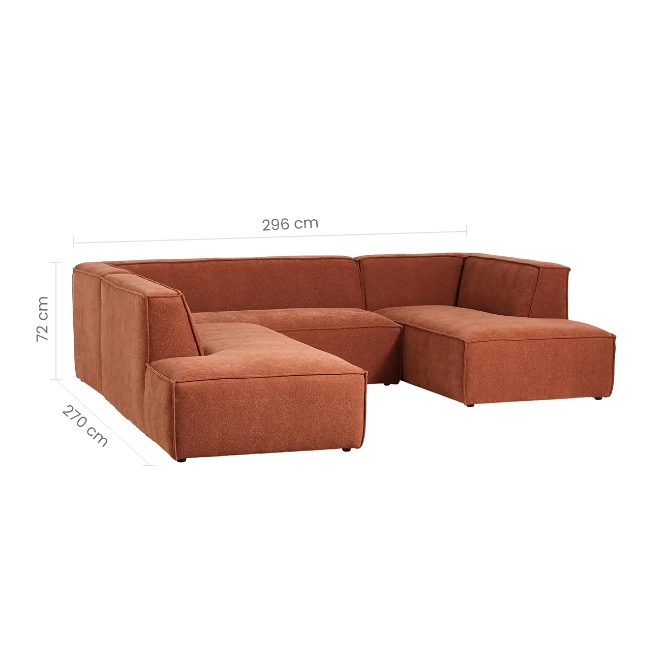 Archie is a Modular Sectional Sofa with mid-century design, geometric curves, and seamless adaptability. It is a rich rust-toned fabric, with a structured statement and exquisite presence. It is a U-shaped sofa with deep seating and an antique appearance. It is a modern and minimalist addition to living rooms adding warmth and luxury to the space. The sofa is a low-profile furniture that brings style and coziness to your home and living spaces.