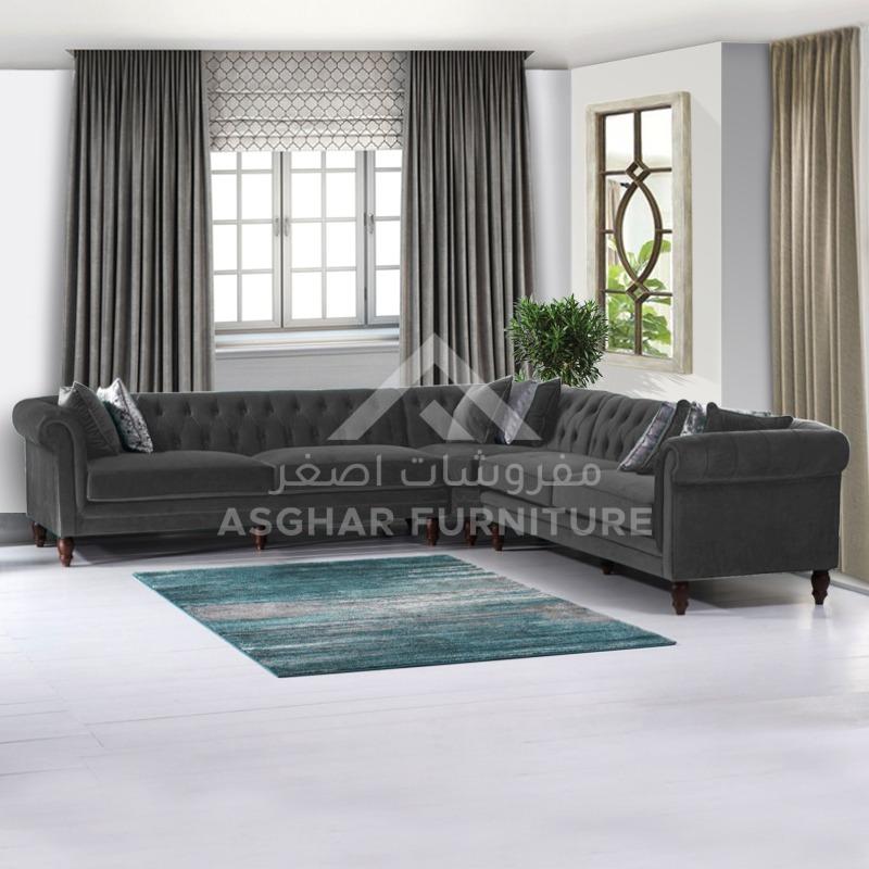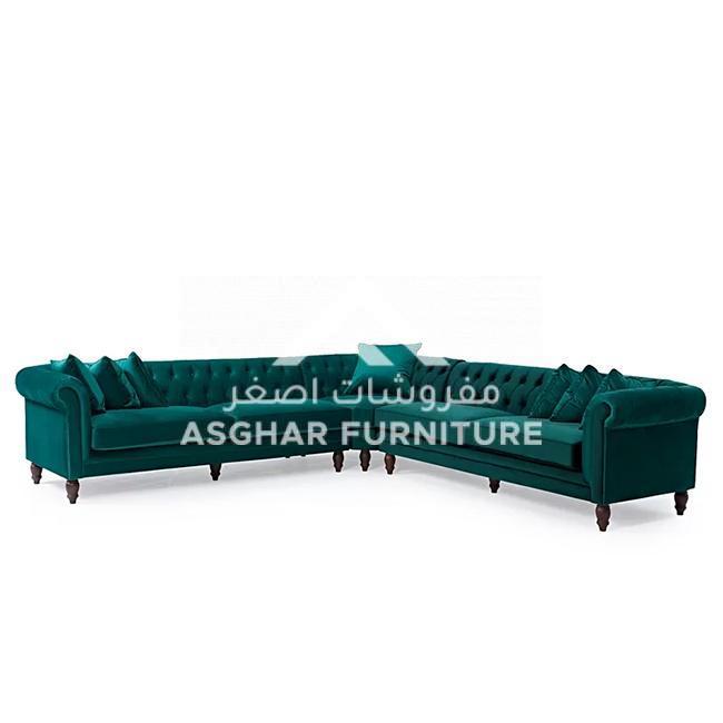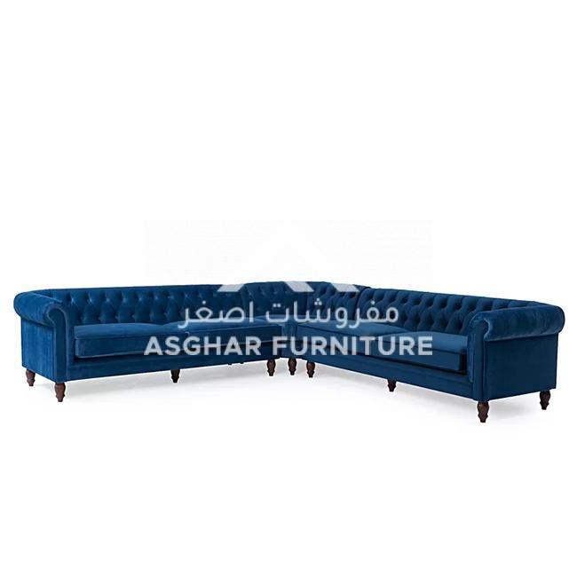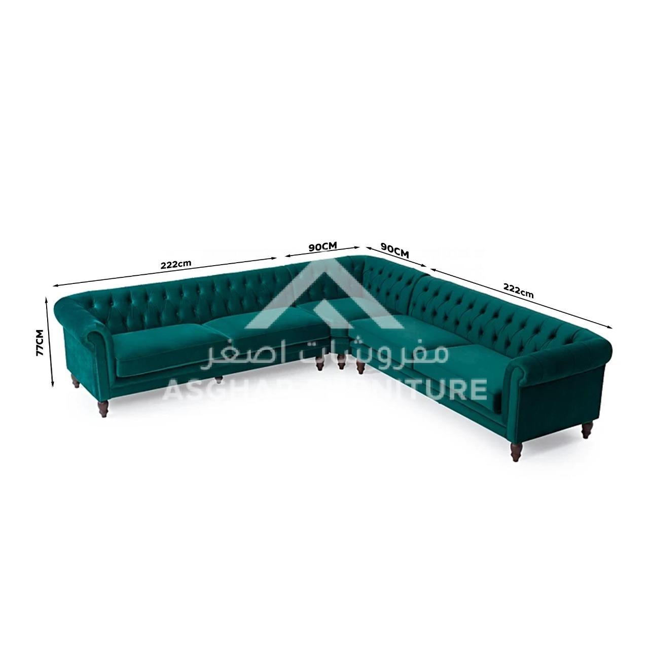 At Asghar Furniture, The modern design of the Emerson Corner Sofa makes a chic statement in any living room setting. Boasting a stunning Chesterfield inspired design, the space saving sofa is a practical and stylish addition to your home. Upholstered in smooth, luxurious velvet, the sofa features a charming deep-buttoned style complemented by elegant scrolled armrests.