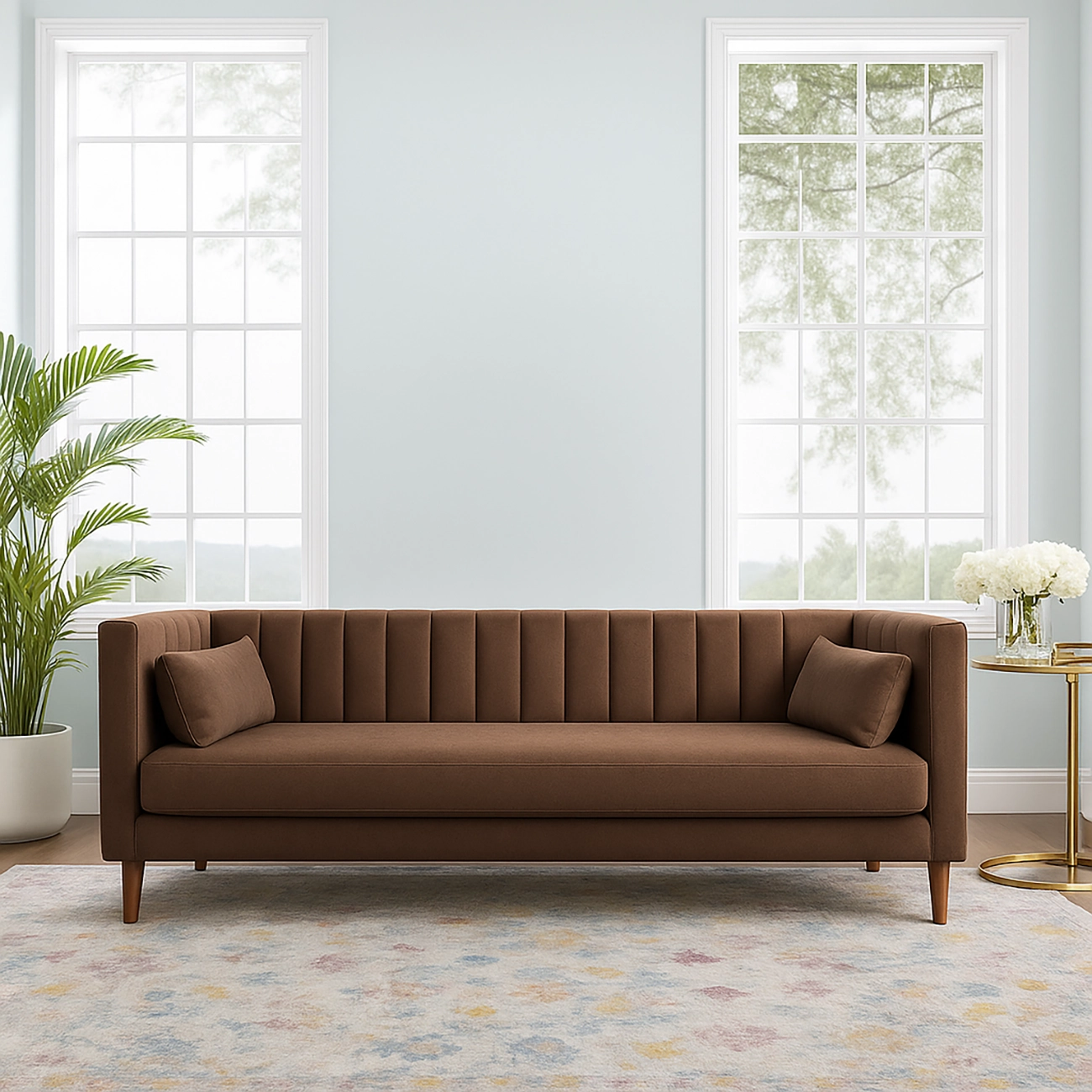 Delight Channel Sofa: Introduce the flowing lines of the Delight Channel Sofa to your living room, bedroom, or office décor. Putting a retro twist on classic tufting, this sofa is enriched with vertical channel tufting that adds visual depth and glam deco style to any space. This living room sofa is upholstered in stain-resistant performance velvet and padded in dense foam for a premium seating experience.
