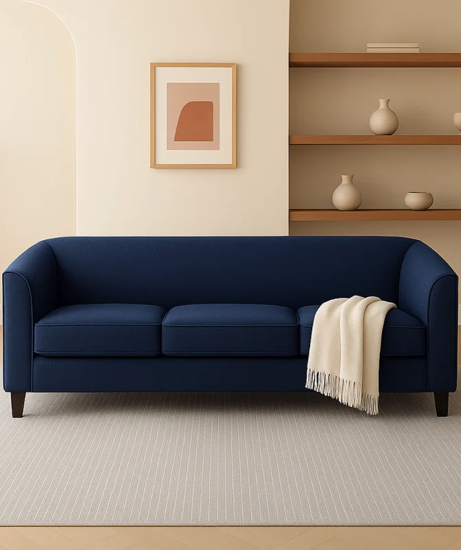 Trendy and Classic, this contemporary Hollis Classic Minimalist Sofa brings a glare of charm to your living room. A flawless design by Asghar Furniture. Available in all types of fine fabrics and upholstery the built of this sofa is perfect for homes that have a compact space. The wide arms and relaxed back lend a highly comfortable support to make those lounging times more fun. Accent this timeless Hollis Classic Minimalist Sofa with colorful cushions and bold prints with it.