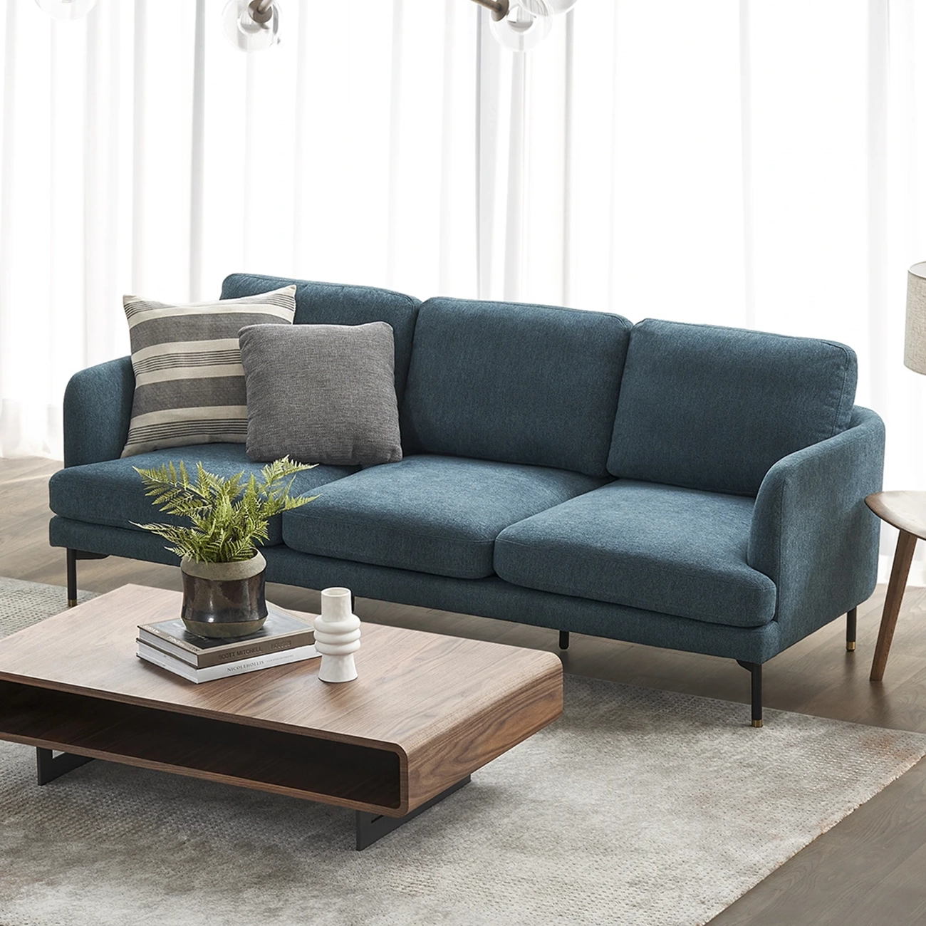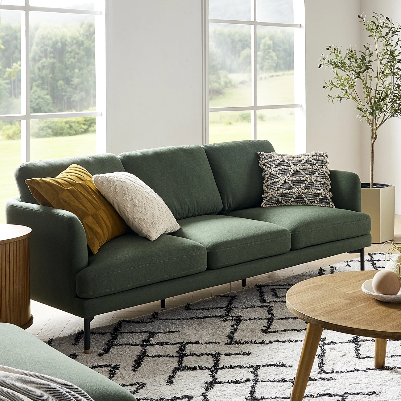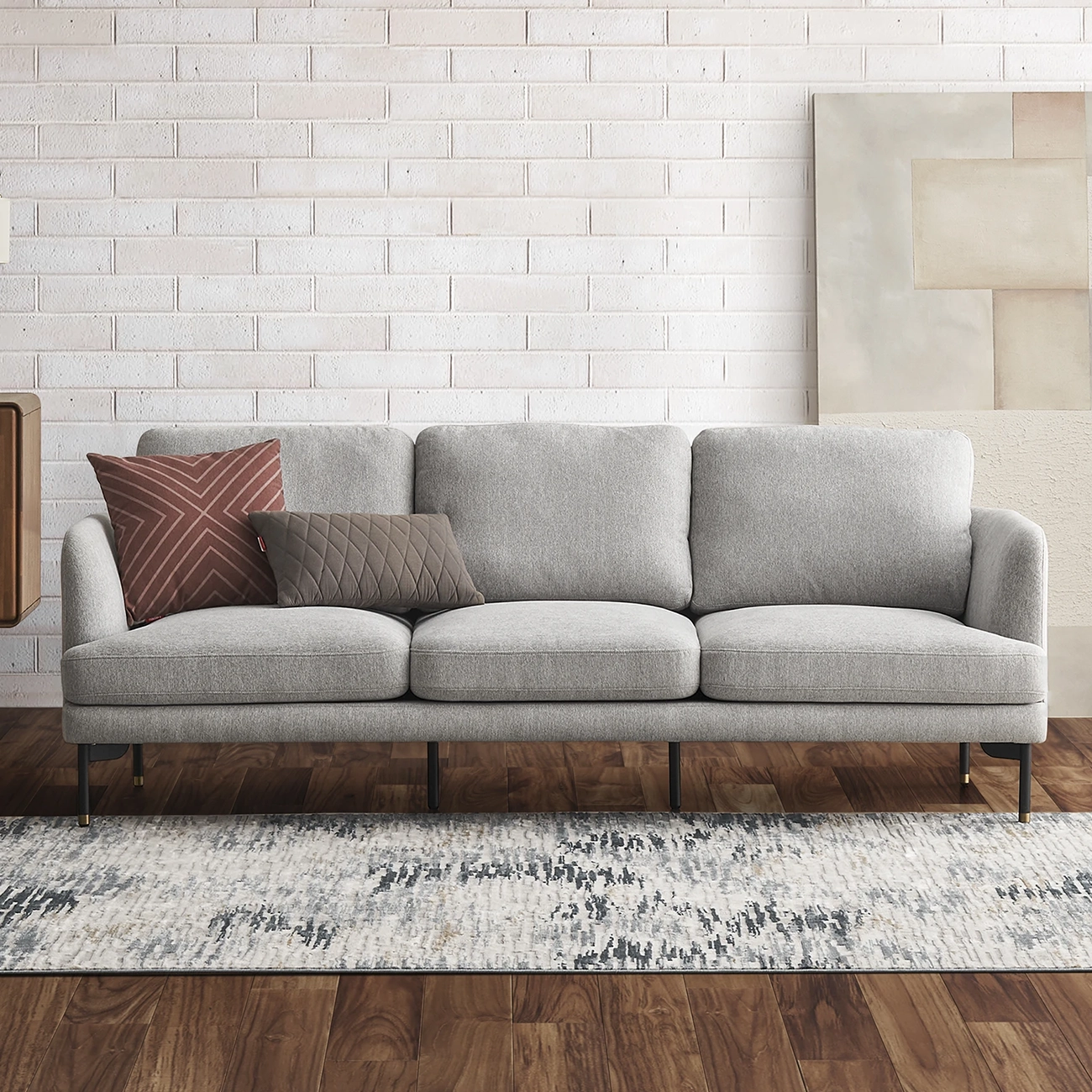 The Loom Three-Seater Sofa is a beautiful furniture addition that speaks of comfort, and opulence. It comes with textured fabrics, modern living room elegance, with slim and tapered legs. The design is subtle and it gives a modern lift to your rooms. The decorative cushions, rounded arms, and cozy reading nook make it a tranquil cadence in your home.