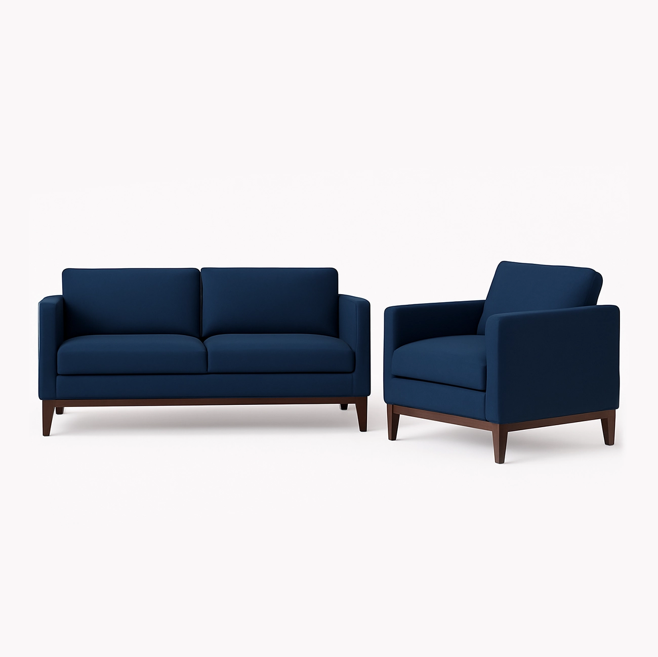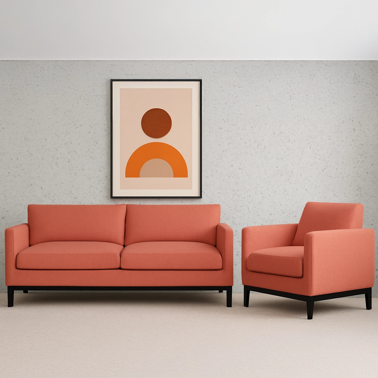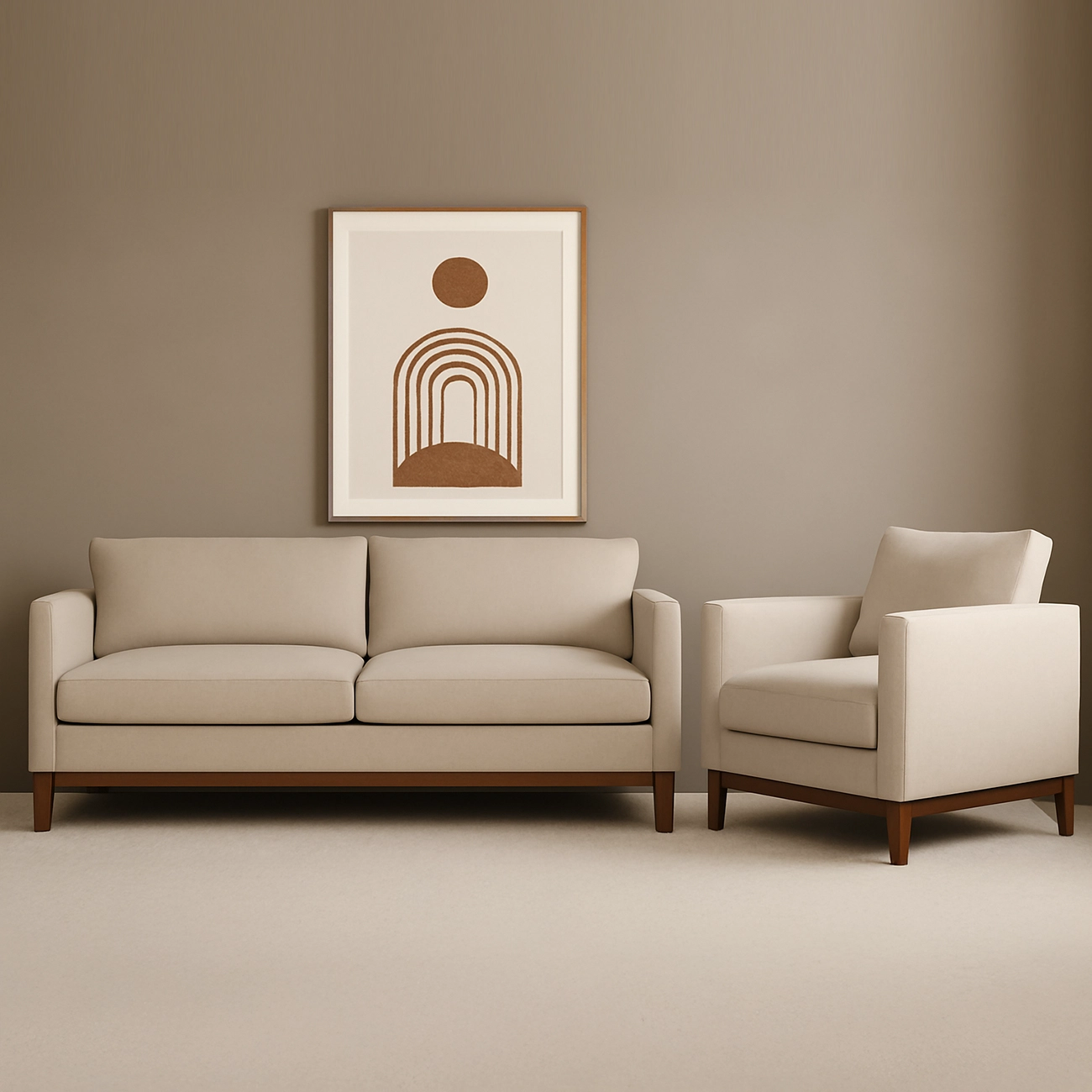 Olivia Upholstered Sofa, Spruce up your living room with this stunning sofa and armchair set. Featuring a solid wood frame, the Solidwood frame delivers a robust foundation, while Fabric upholstery enhances the soft padding on the seats and backs for optimal relaxation.