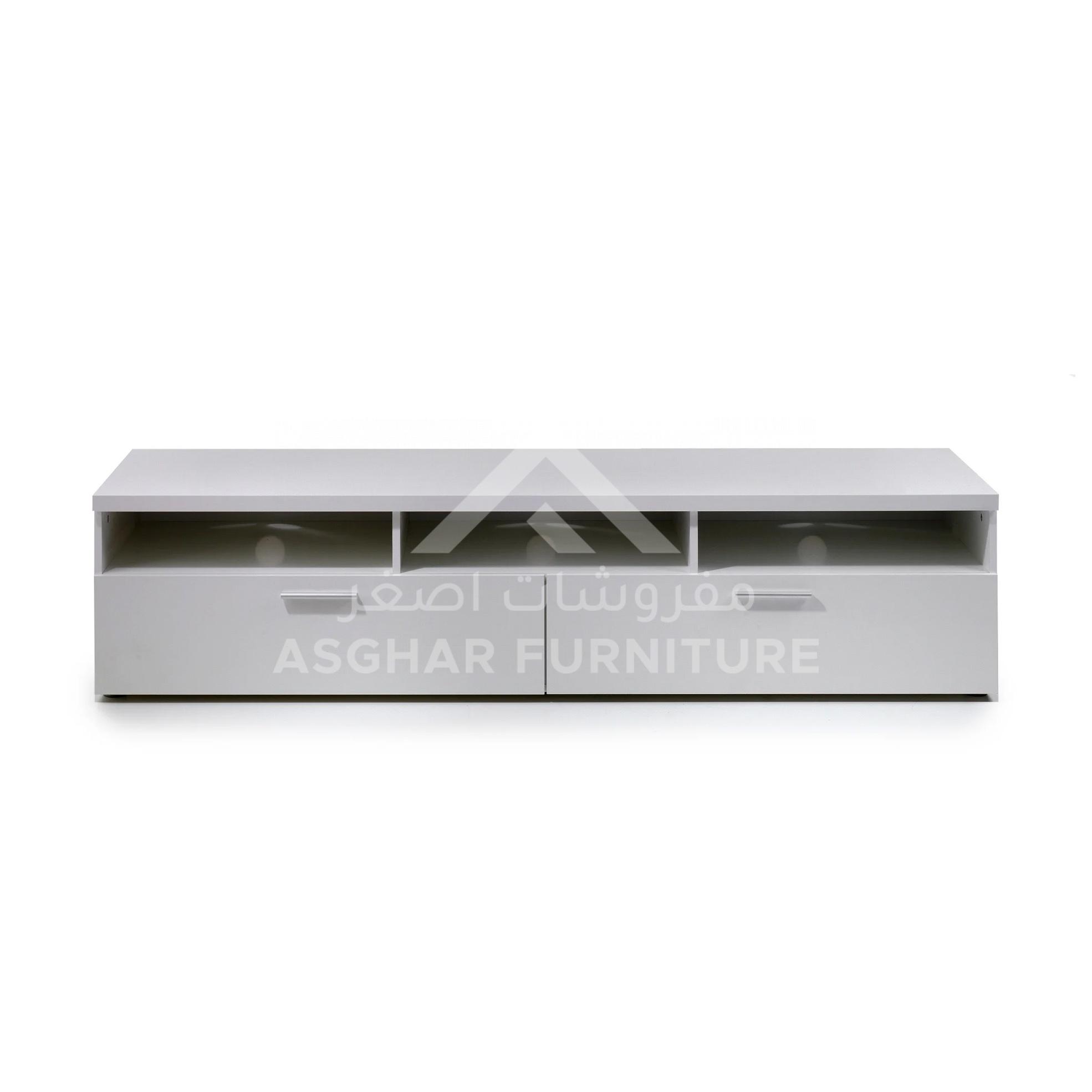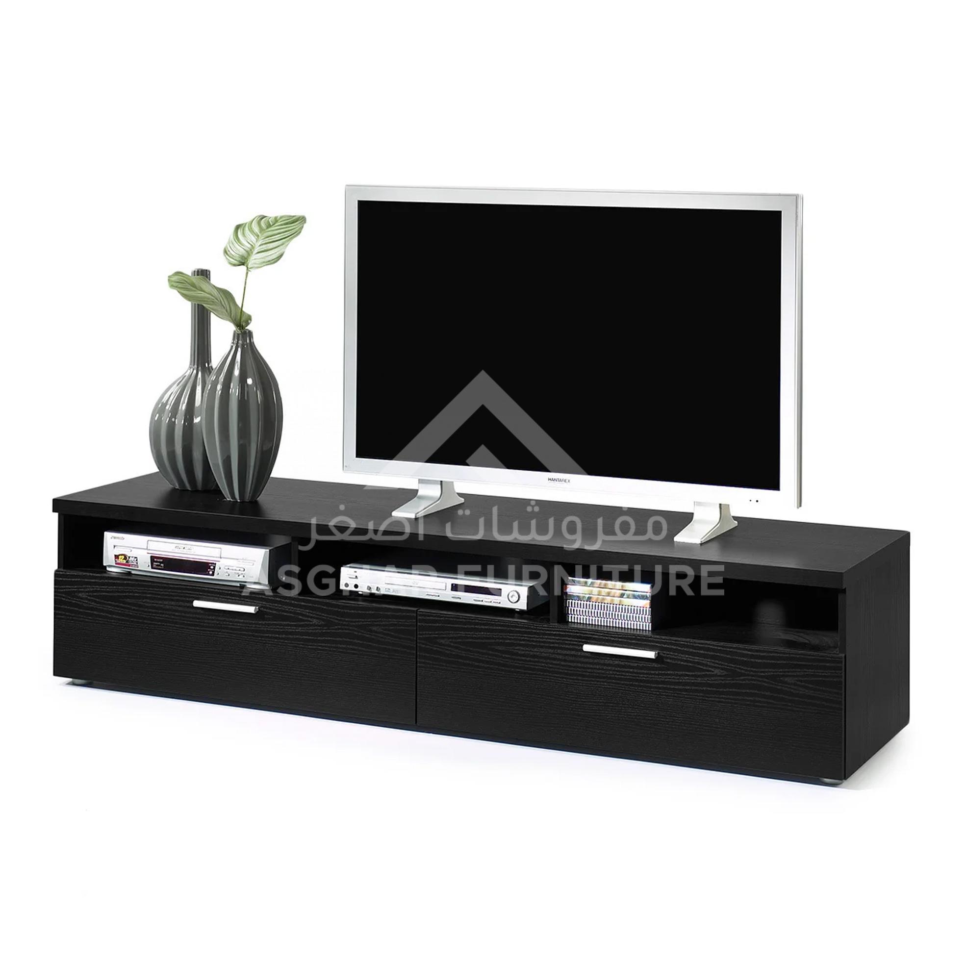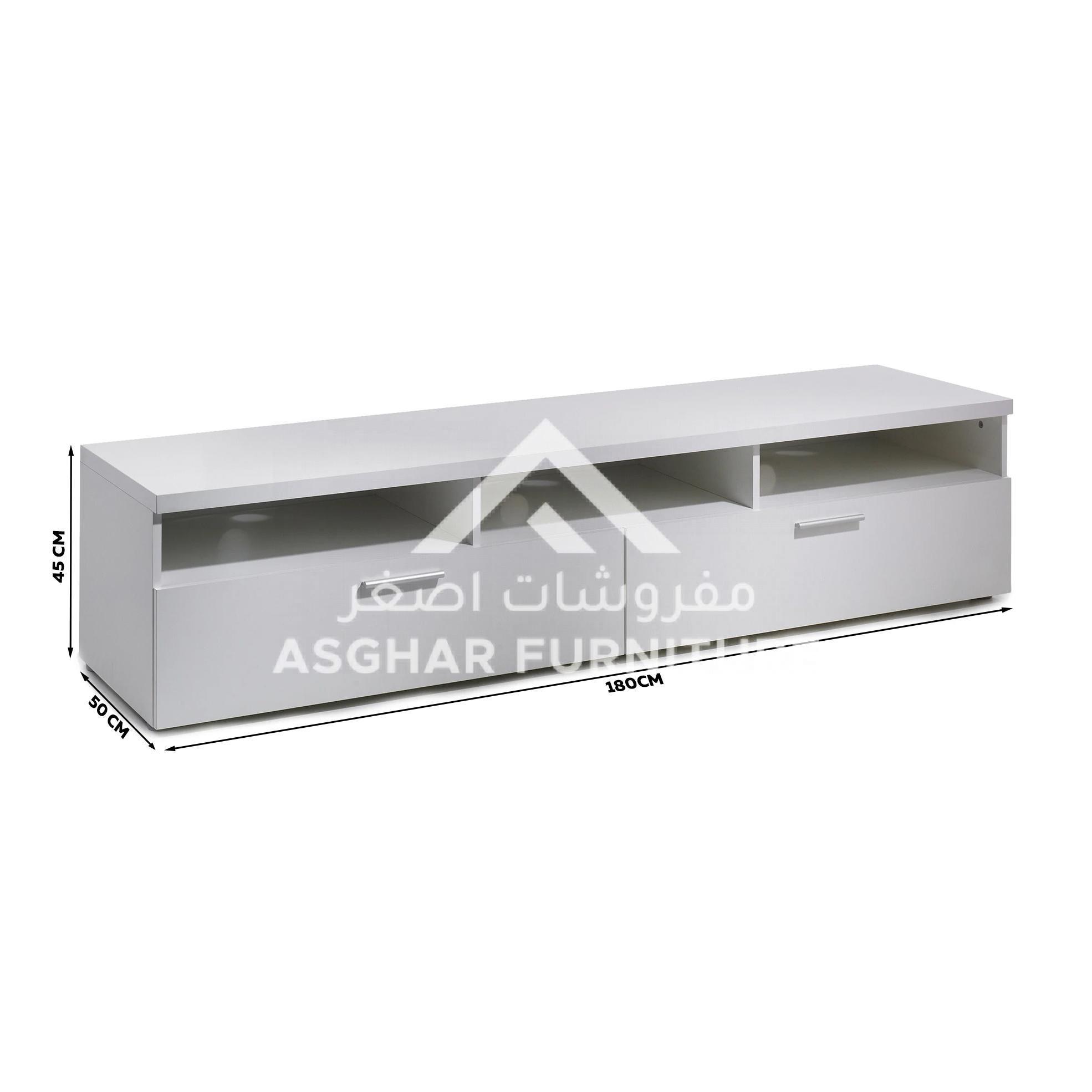 Add a clean, sharp look to your decor with this Heso Modern TV Stand. The beautiful, low-profile stand is crafted from engineered wood, topped with melamine for a sleek look that is resistant to scratches, heat, and water stains. Large enough to accommodate a variety of television sizes, the stand features three open shelves with cord cutouts, set over two large drawers, ideal for storing your must-have media items.