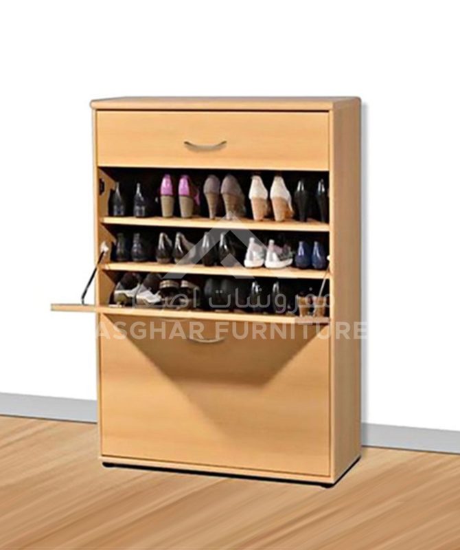 At Asghar Furniture, Two-Door Shoe Cabinet Featuring a modern design and ample storage space, Two door conceal multiple shelves with storage space for up to 24 pairs of shoes.
